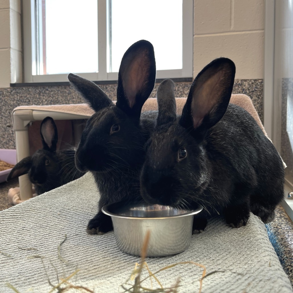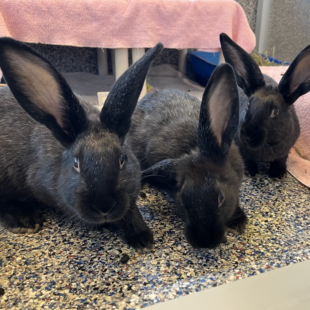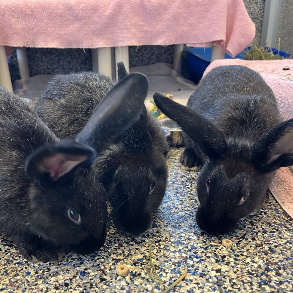 Come say hello to our beautiful trio of bunnies: Ramona, Matilda, and Claudia! These sweet girlies all love each other very much and are a required 3-for-1 adoption. These ladies are a curious young bunch who love to explore, snack, and lounge together. Each one of them gets so excited to say hi whenever someone approaches their enclosure. They are each fun, active, and friendly in their own way, and though we’ve loved getting to know them here in the shelter, it’s time for these friends to find a real place they can call home. Bonding rabbits is not always an easy process, so finding a group that already gets along so well is a great perk. You’ll never have to worry if your bun is lonely when you’re away knowing these girls always have each other for company. How can three not be better than one when each one is so adorable??? If you’re willing to give this terrific trio of triplets a chance, come stop by Lollypop Farm to have your heart stolen x3!