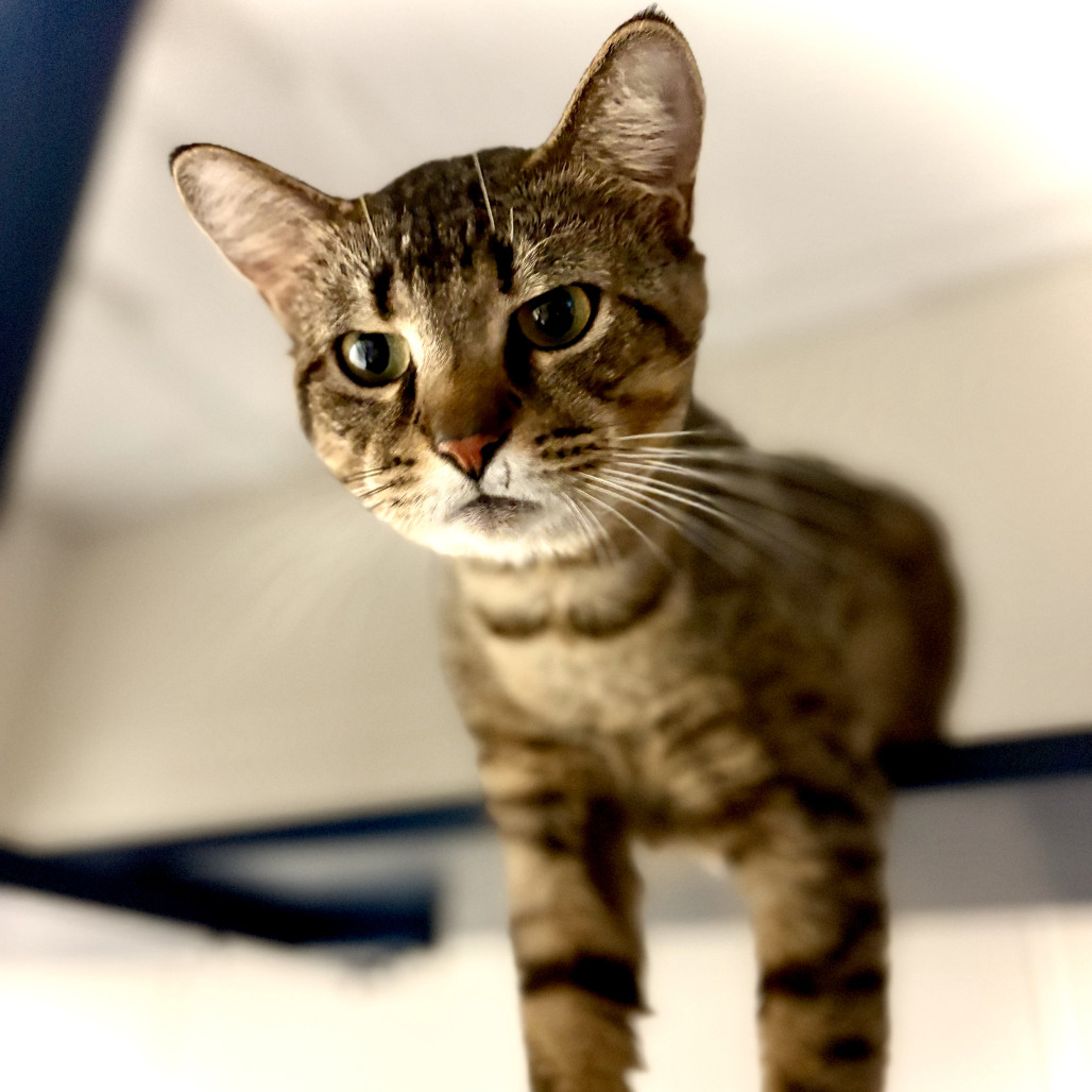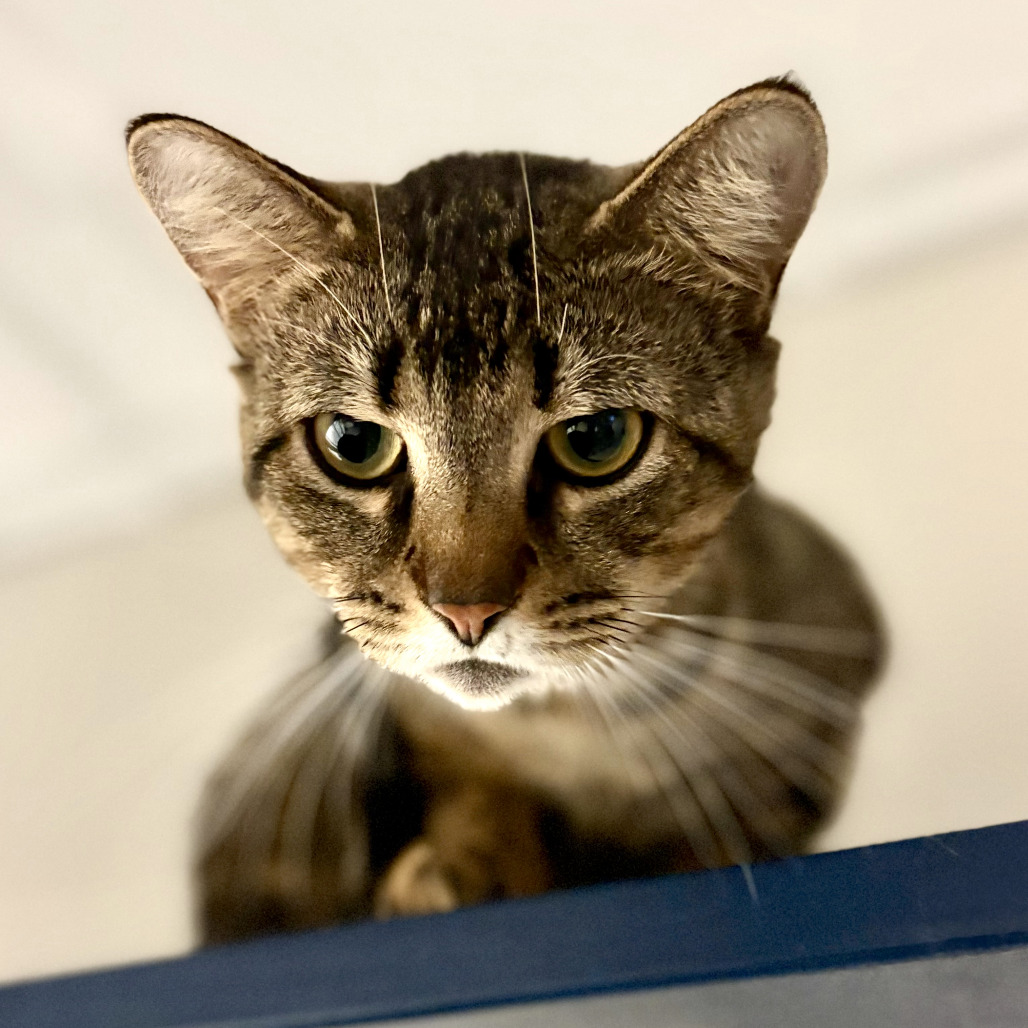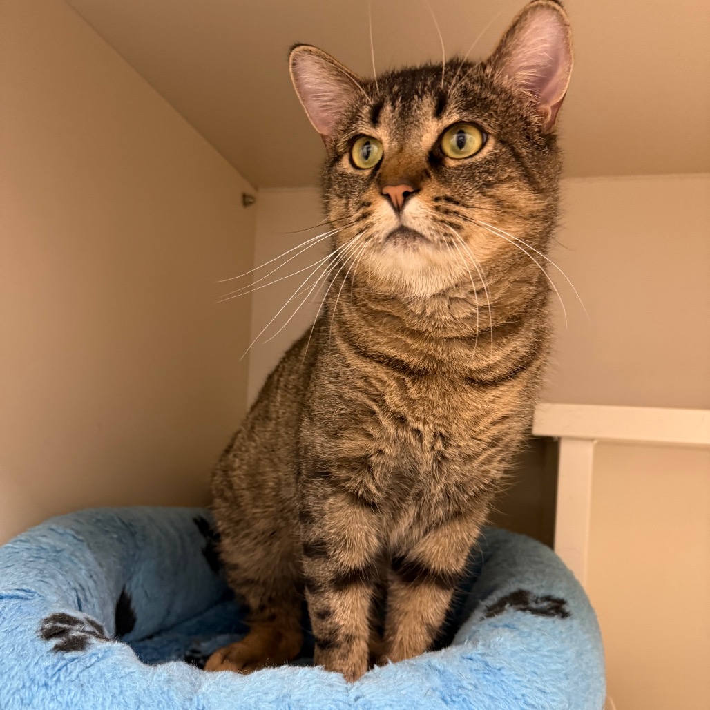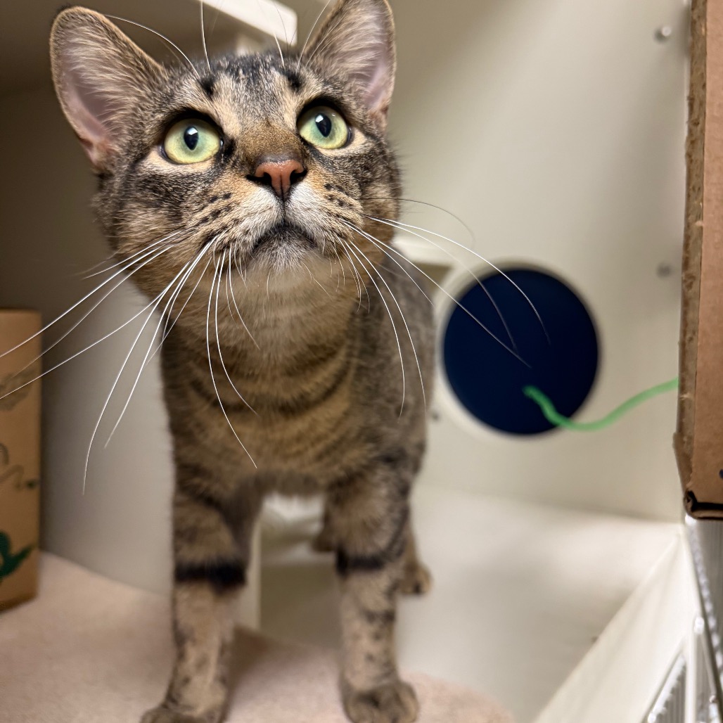 Louie is a light brown tabby with slightly rounded ears and a forever-curious, quizzical look, a timid soul who dreams of a quiet home and a gentle feline friend. He melts into cozy nooks and blanket burrows, finding comfort in soft spaces where the world feels safe. A true foodie, he delights in several small meals a day and savors a Churu treat with quiet joy. He should have puzzle feeders and lick mats, as he consumes his food at record pace. Speak or read to him in hushed tones, and you’ll see him slowly unfold, like a shy whisper of warmth ready to settle its way into your heart.