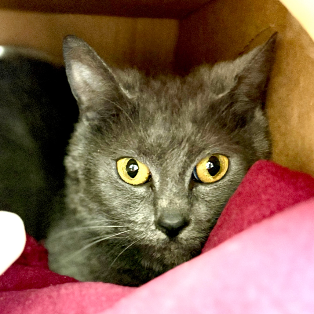 Dewdrop, a silvery 3-year-old wisp of a gal, moves through the world like a soft shimmer of morning light—gentle, quiet, and a bit timid at first glance. She dreams of a serene, child-free home where calm voices read her stories, classical music drifts like a lullaby, and cozy nooks await her retreat. She’s done well with other cats and would cherish a mellow feline friend by her side, though dogs are not part of her peaceful vision. With patience, kindness, and a tranquil space to unfold, Dewdrop may gently reveal her sweetest self—glittering softly in the quiet corners of a loving home.