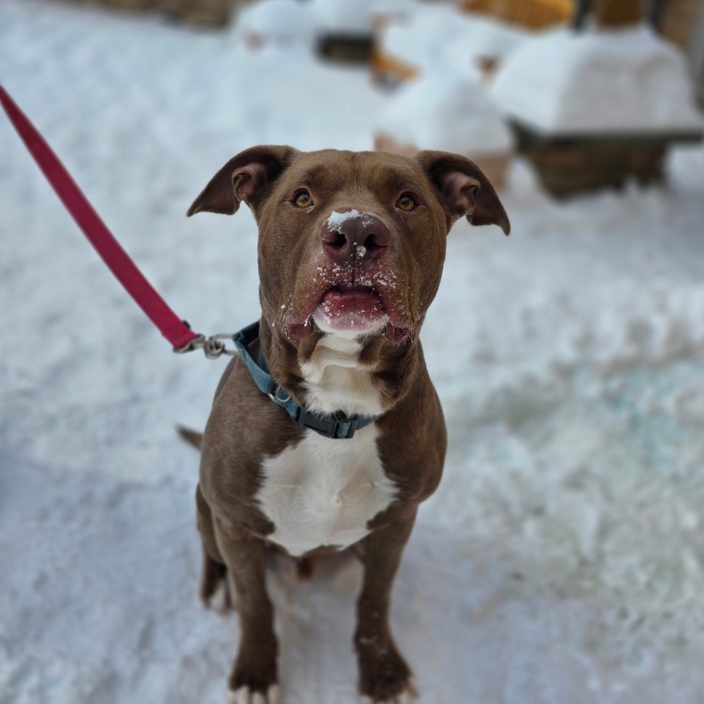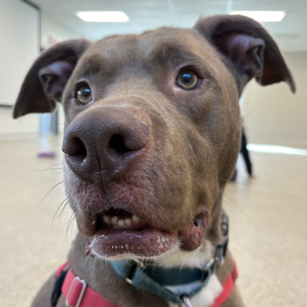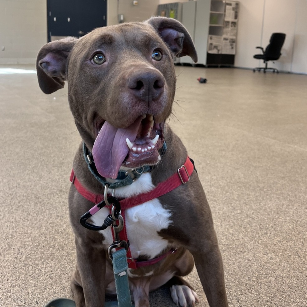 Every day will be Thanksgiving if you bring Turkey home with you! This big bird is two years old and was found by animal control, so we do not have a solid grasp of Turkey's past. That being said, here at Lollypop this gobbler has a reputation of being a warm, affection gentleman. He loves nothing more than entertaining company with his wiggly body and bouncy demeanor. While he is a big boy, he knows how to sit and receive attention in a polite manner. Give him some TLC and you will have a friend for life! Our walkers agree that Turkey is a great companion for a stroll. Our staff light up when we see him walking through the halls. All we need is for someone to come pick him up so he can Turkey Trot his way out of Lollypop!