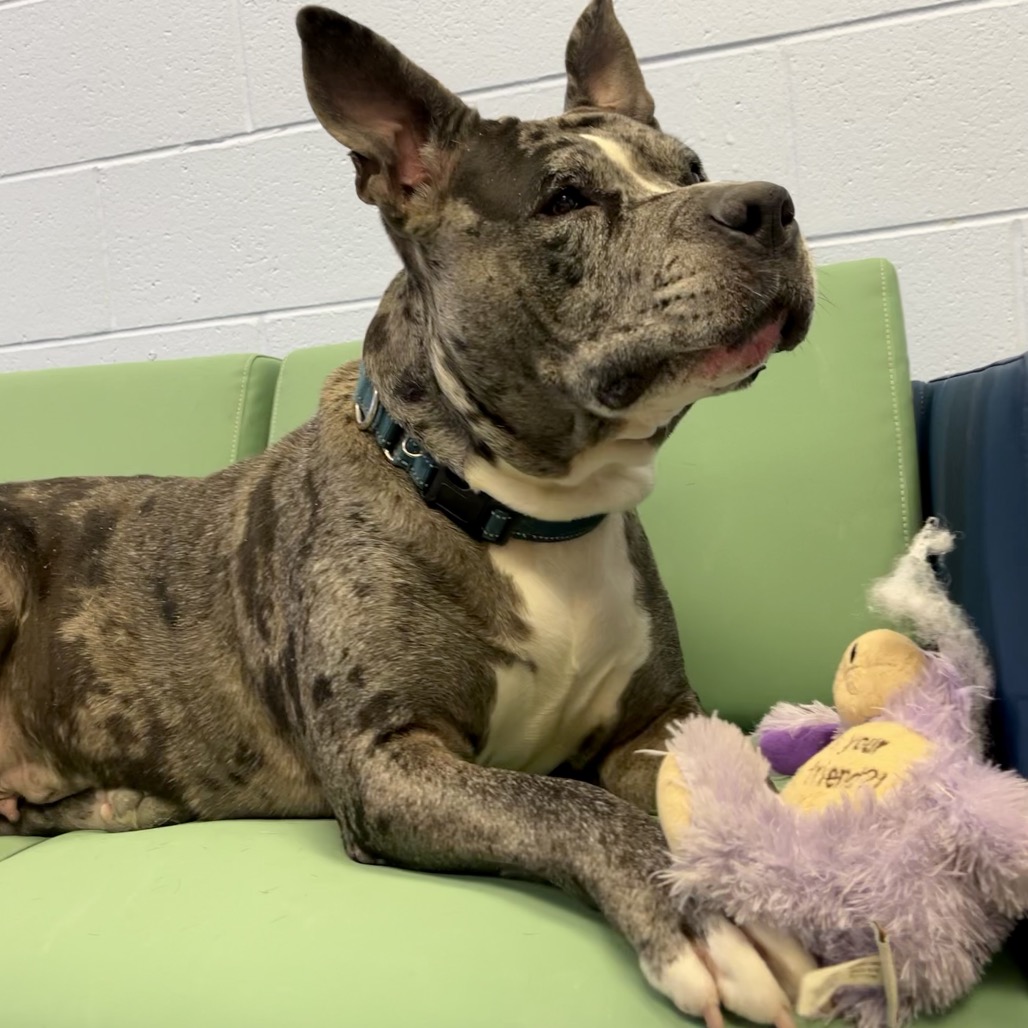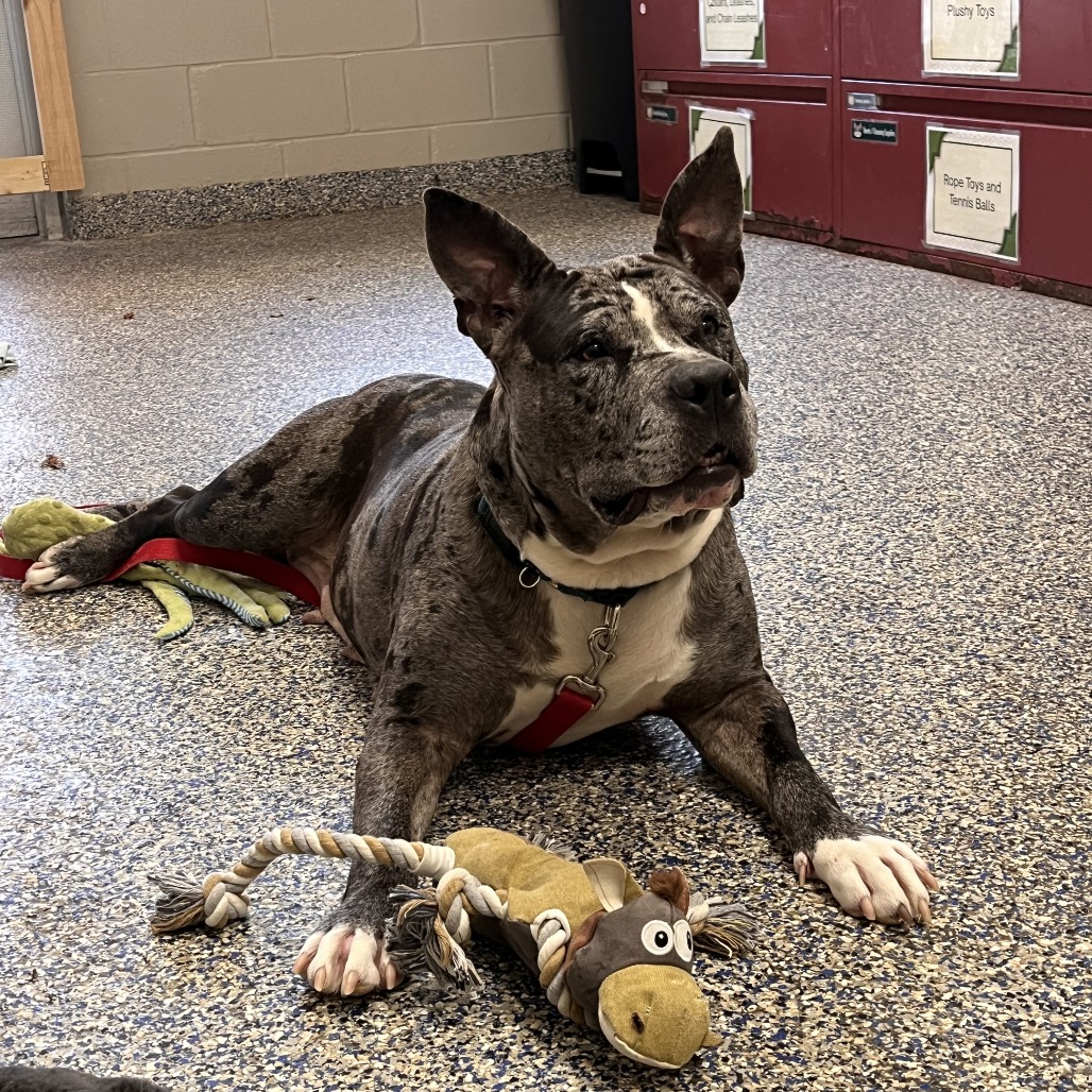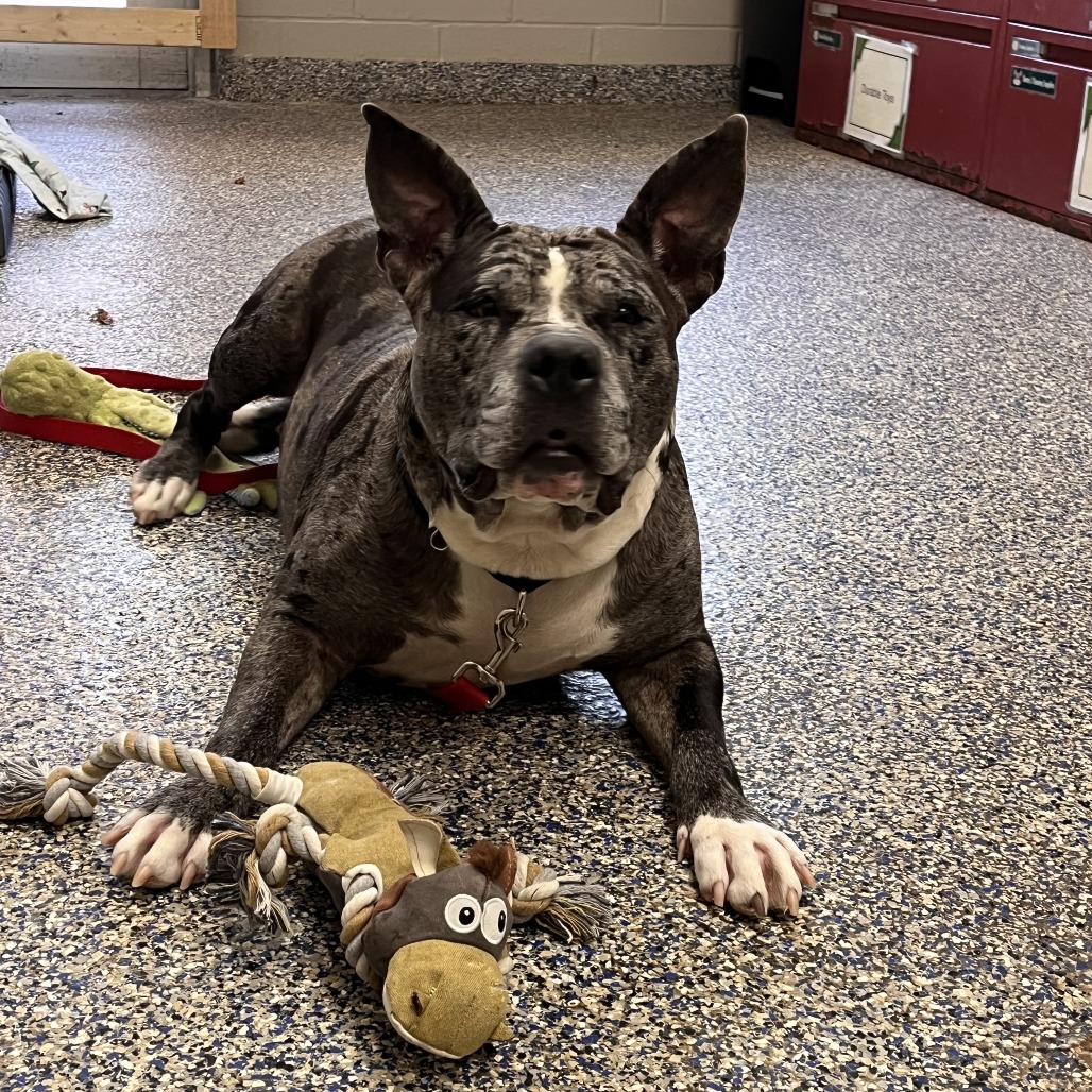 Despite a generic name like "Girl", our friend Girl is anything but generic. Girl came to us through our Humane Law Enforcement Department, but isn't letting an unknown past keep her from a bright future. Girl loves playing with her stuffed toys, enjoying treats and accepting butt scratches from her friends. Girl can sometimes take some time to warm up to new human friends, but you'll be well on her way to her friends list with the help of some snacks. Our kennel staff, adoptions team and many others have taken a major liking (okay, a loving!) to Girl. Between her goofy tippy-tap dances, her toy-related antics, and love of a good butt scratch, we just can't get enough. Interested in meeting Girl? Give us a ring or stop by to learn more!