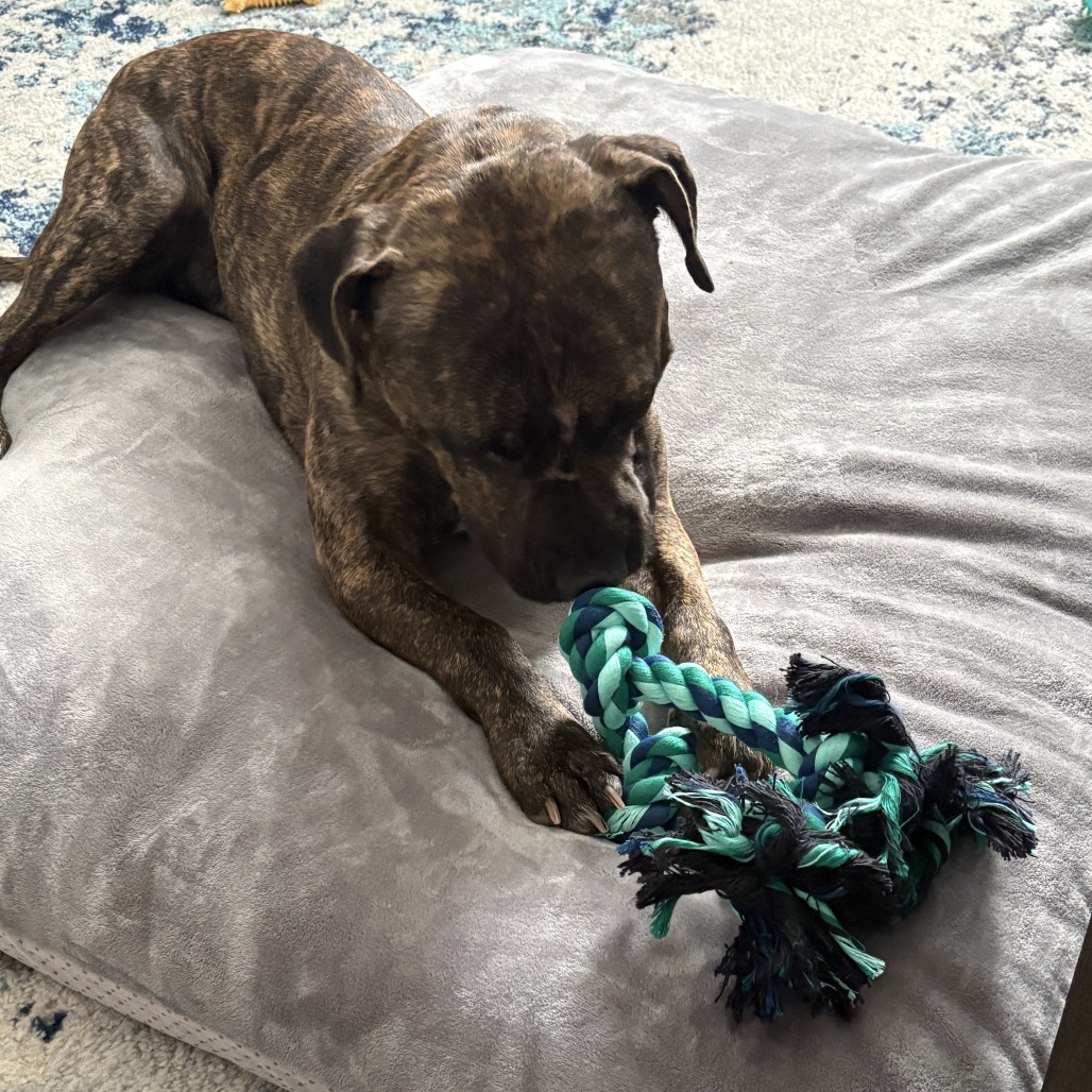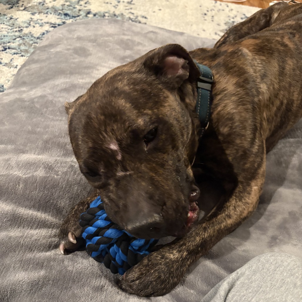 If you have any questions about me, please click the "Ask About Meeting Me" button next to my profile, or email my friend Melissa at munke@lollypop.org Rico is a very sweet young man hanging out with his foster family while waiting for his forever home! If you want a dog that will play fetch and give you endless love, look no further than this pint sized brindle boy. People may look at the photos of his scars and think he is intimidating, but Rico has shown to be anything but. If you give this man the TLC he craves he will melt into your lap. Rico would prefer to be the only dog in the house, but his big personality will make sure your home is still full of joy. If you want to help this young man with finding a second chance ask about Rocking Rico today!