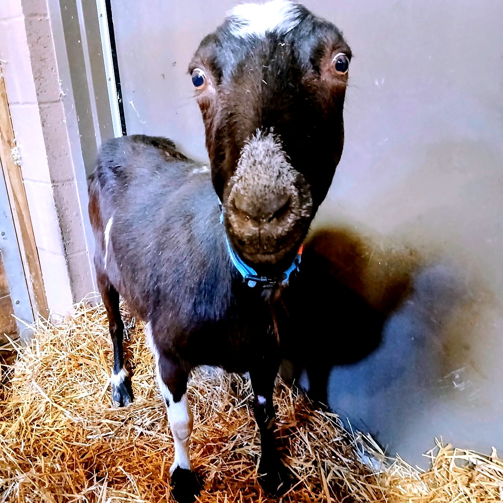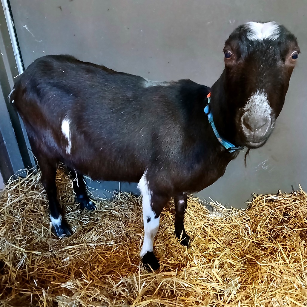 Meet Helen, a charming LaMancha goat! Helen, estimated to be about 3 months pregnant, is looking for a loving home where she can safely welcome her new kids into the world. Helen’s gentle disposition and playful spirit make her a joy to be around. She’s curious, affectionate, and enjoys the company of both people and fellow goats. As a LaMancha, she’s known for her unique, tiny ears and her friendly personality, making her a favorite among all who meet her. Helen would thrive in a home that can offer her plenty of space to roam, fresh hay, and lots of love. With her expecting status, she’ll need a little extra care and attention in the coming months, but in return, she’ll bring joy, laughter, and the pitter-patter of tiny hooves to your farm or homestead. If you’re ready to open your heart and home to a sweet mama-to-be, Helen is eager to meet you! Helen has tested positive for CAE, but she remains healthy and hasn’t shown any symptoms. It’s important to know that only about 25–30% of CAE-positive goats ever develop clinical signs. If you already have a CAE-positive herd, she could be a wonderful fit. You could also start your own mini herd by adopting Helen and some of her other friends from her herd. Interested in learning more? Please complete the Farm Animal Interest Adoption Survey or reach out to farm@lollypop.org. We’re happy to talk with you about Helen, CAE, or the adoption process and answer any questions you might have.