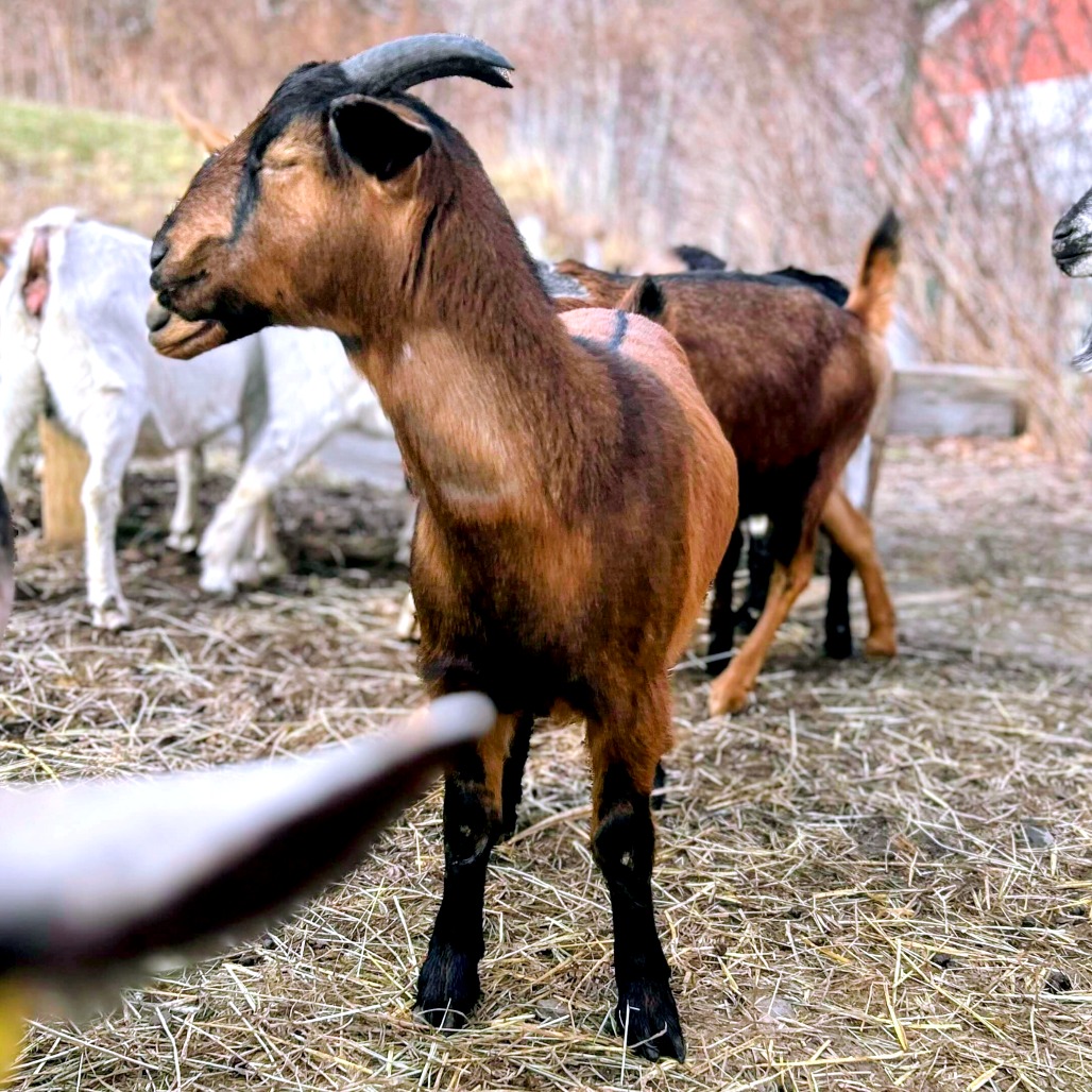 Meet Vera, a young goat looking for a home. (She is estimated to be around a year old). She can be shy at first, but she is starting to show her personality. If you are looking for a gentle and delightful goat, Vera just might be your girl. While Vera has tested negative for CAE, she did come from a herd that has been mostly positive. Because of her exposure, Vera would be a great fit for you if you already have a CAE positive herd. You could also start your own mini herd by adopting Vera and some of her friends. Interested in learning more? Please complete the Farm Animal Interest Adoption Survey or reach out to farm@lollypop.org. We’re happy to talk with you about Vera, CAE, or the adoption process and answer any questions you might have.