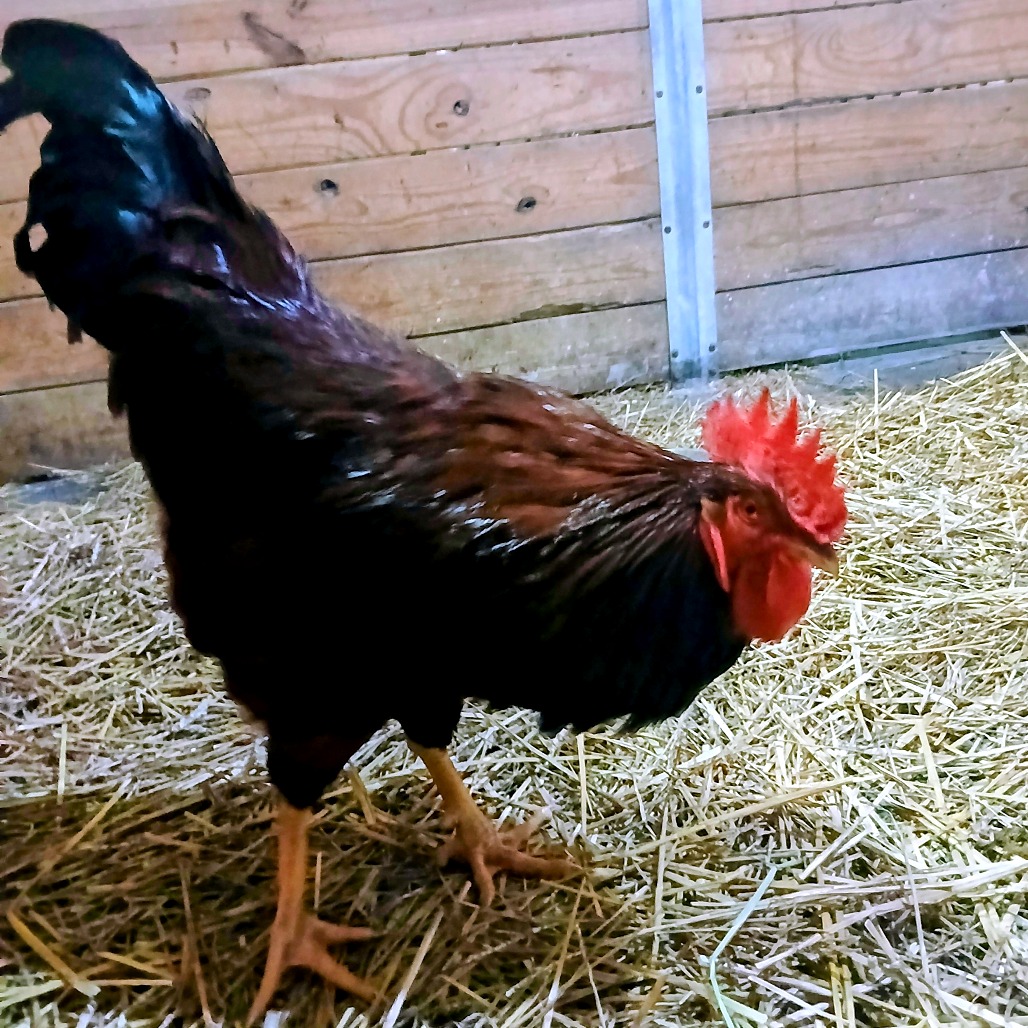Rusty is a 9-month-old rooster with a big personality and an even bigger appetite for snacks. Always eager to pitch in, Rusty trails the farm staff each morning, enthusiastically assisting with chores and spreading cheer throughout the barnyard. His helpful nature and friendly demeanor make him a favorite! If you’re looking for a cheerful and loyal feathered companion, Rusty would love to join your flock and bring joy to his forever home! Please fill out the farm animal adoption application or send an email to farm@lollypop.org if you are interested in adopting Rusty. Farm animals are adopted by appointment only.