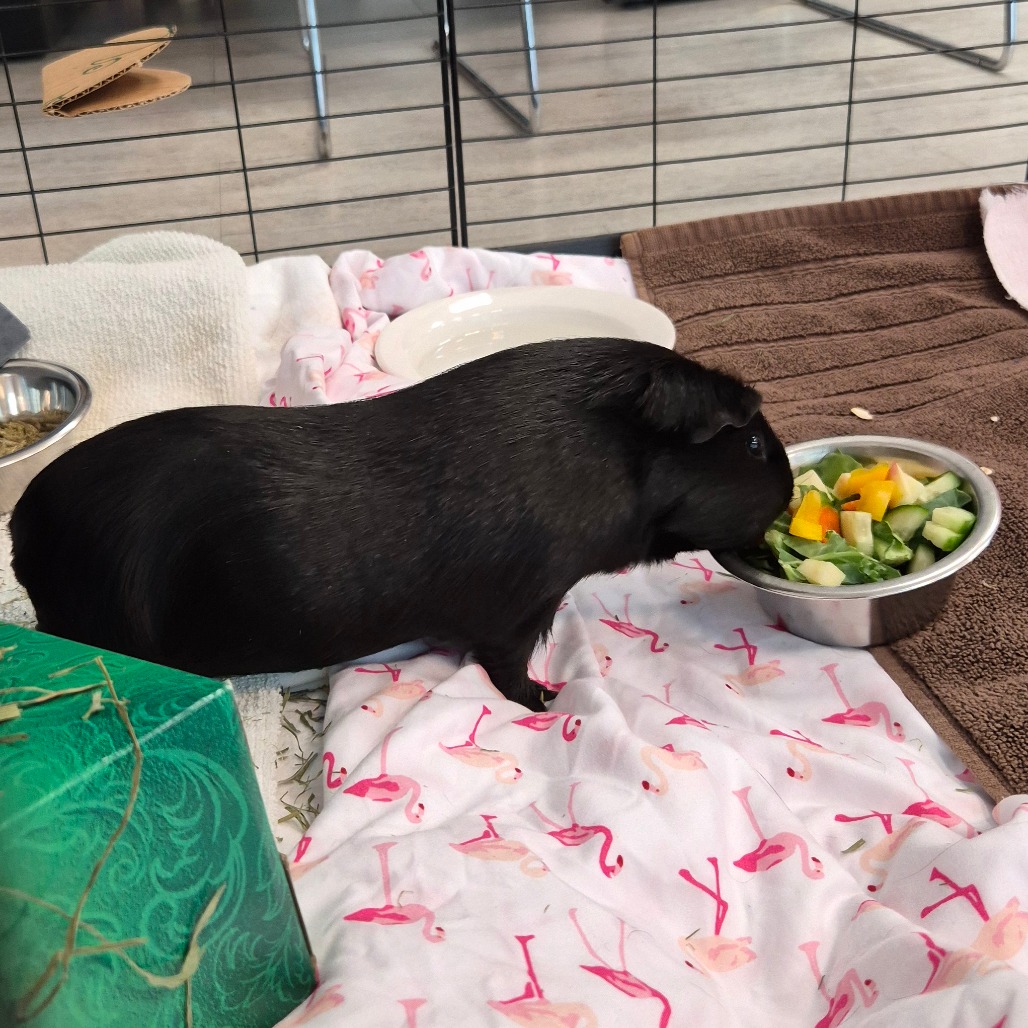 Don't let the name fool you - Miss Kitty is a healthy young guinea pig looking for a home. For some reason, inter-species namesakes are not uncommon here at Lollypop Farm. Unlike other pets such as actual kitties, or dogs, Miss Kitty does not require a litterbox or leash walks. She just requires a patient, gentle home who will let her be the delightful little guinea pig that she is. And of course, lots of timothy hay to munch on. This lady is currently living on her own, but if you're looking for a roommate for another female guinea pig at home, then this might be your gal! She will just need to go slow, and have her own space to start out. Come to the Greece Ridge Mall to meet her today!