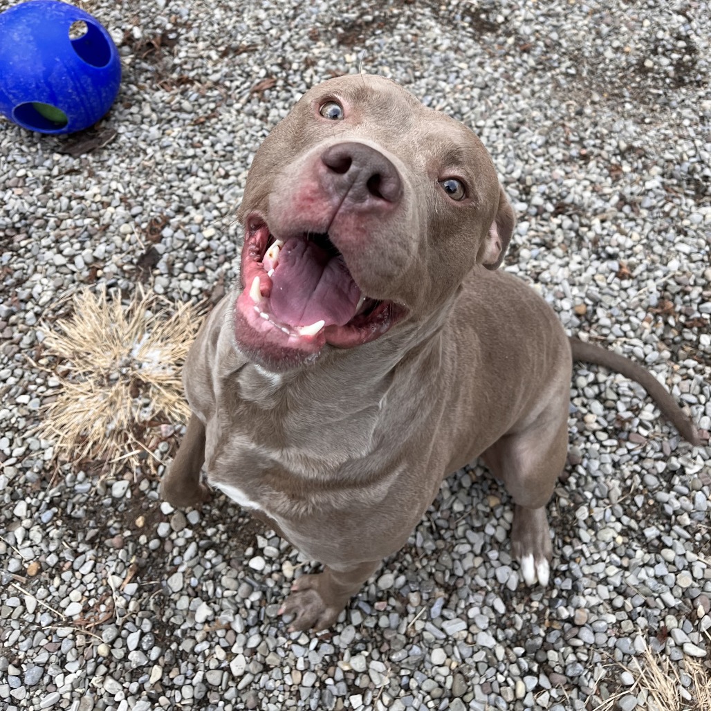 Jinx is a big grey goofball that is ready to jump, spin, sit, down, and roll into your life! When he isn't busy making friends with our staff members, Jinx can be found playing with toys and enjoying long walks to the treat cabinet. Between a positive history living with other dogs, his snuggly nature and an overall positive attitude, we believe that Jinx would mesh nicely with many different families. There's only one way to find out if Jinx is "the one" to join your family as the newest and furriest member...come to Lollypop Farm and meet with him!