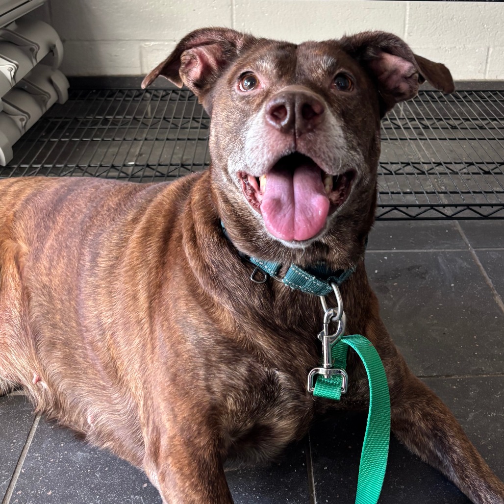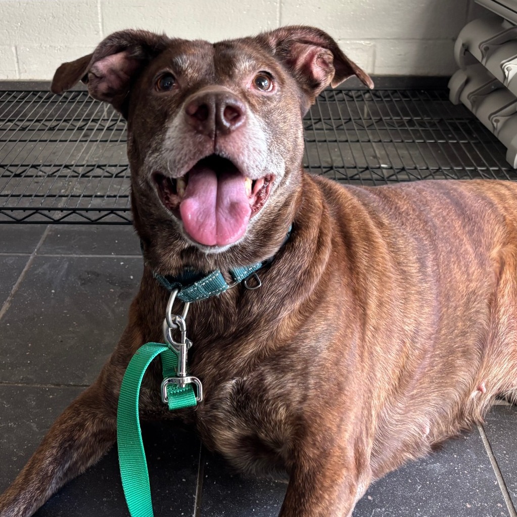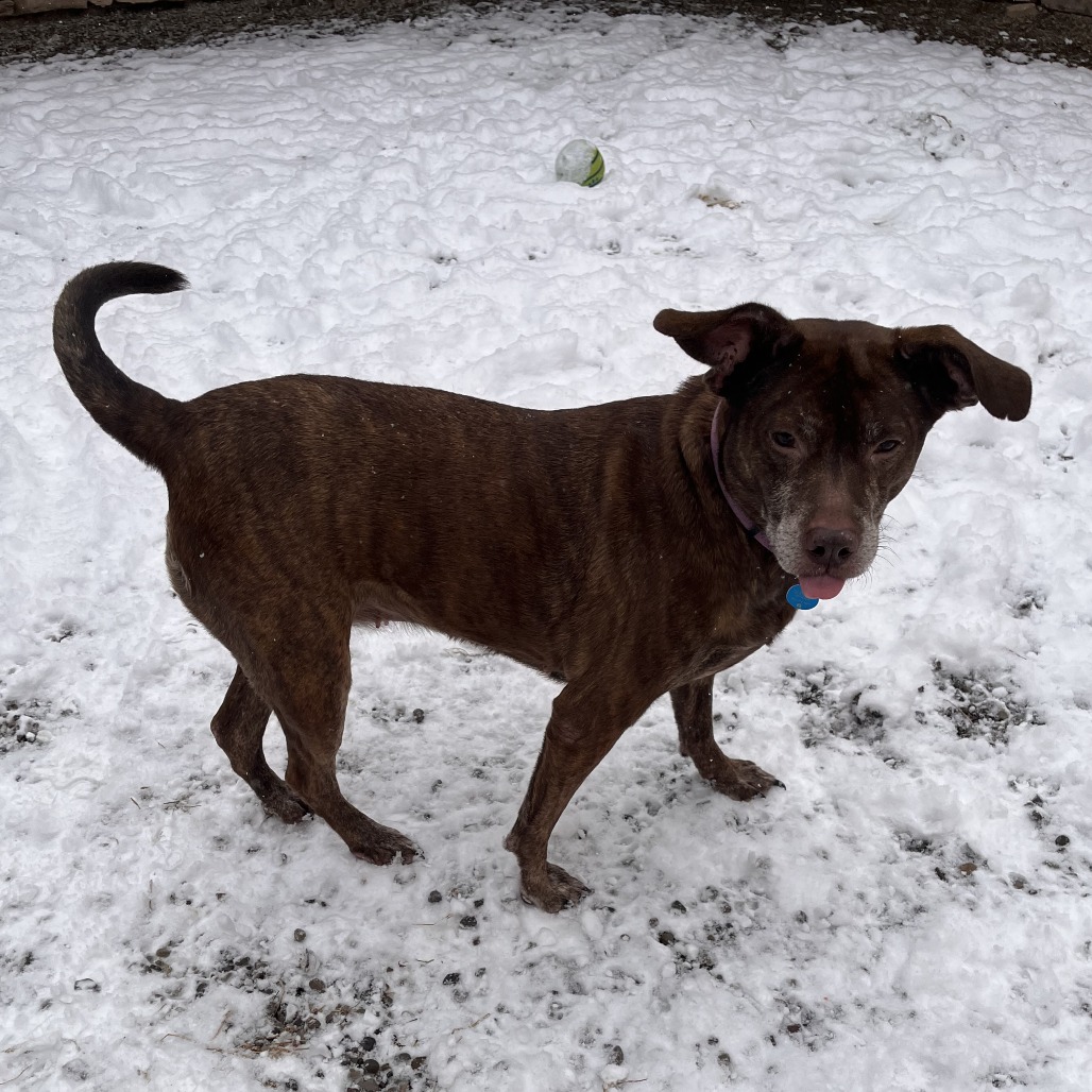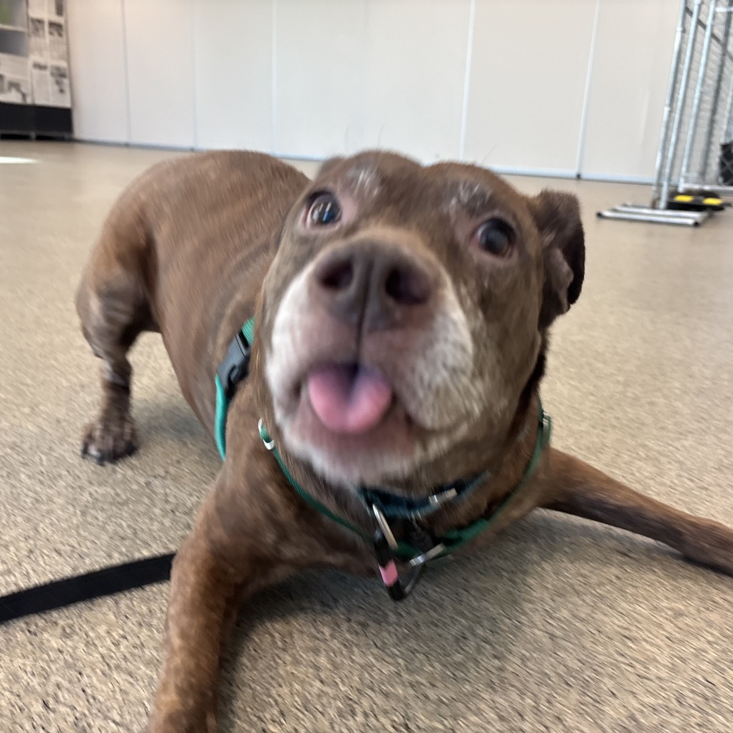 Macy may be middle-aged, but boy, she does NOT act it! This goofy, large lady is a hit in our dog playgroups, keeping up playing with dogs of different shapes, sizes and ages like a champion. Macy is a huge lover: whether you have two legs or four. She even has a positive history with small children. She's on a bit of a diet to lose some weight, but otherwise is healthy, happy and eager to join your family. Macy is happy to curl up on the couch and enjoy snuggles, or to stroll the park with you. She is a do-everything dog, and is adored by everyone that she meets. Interested in seeing what all of the hype is about? Please come meet Macy!