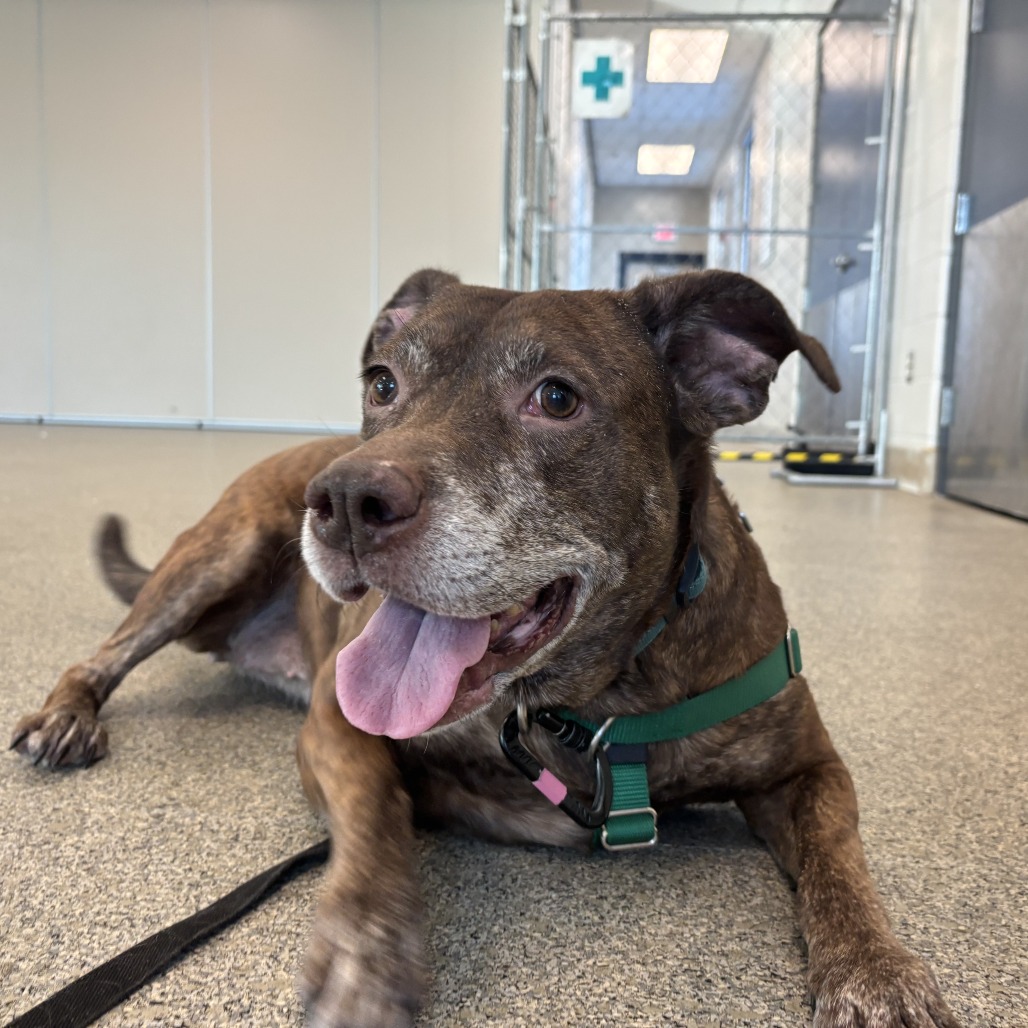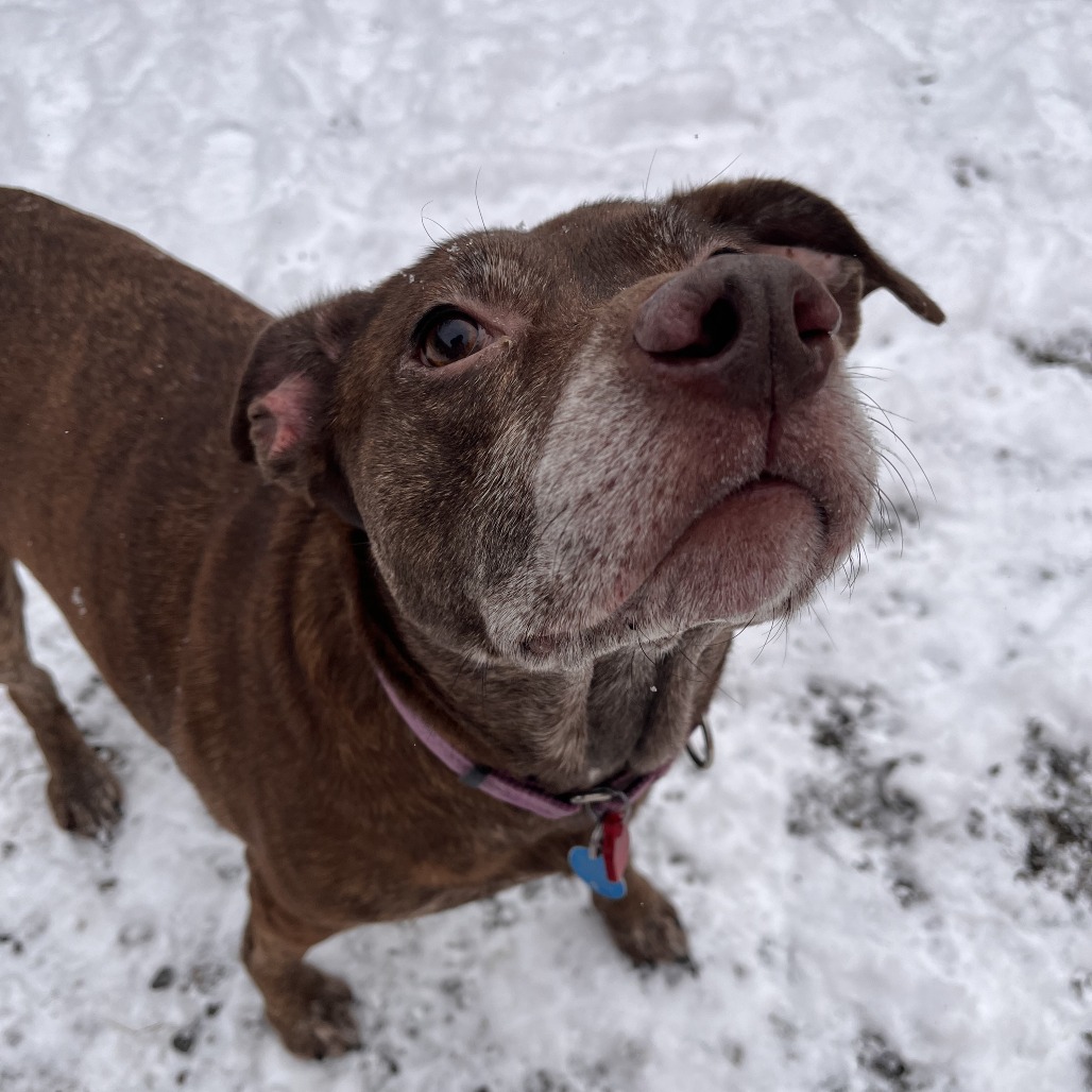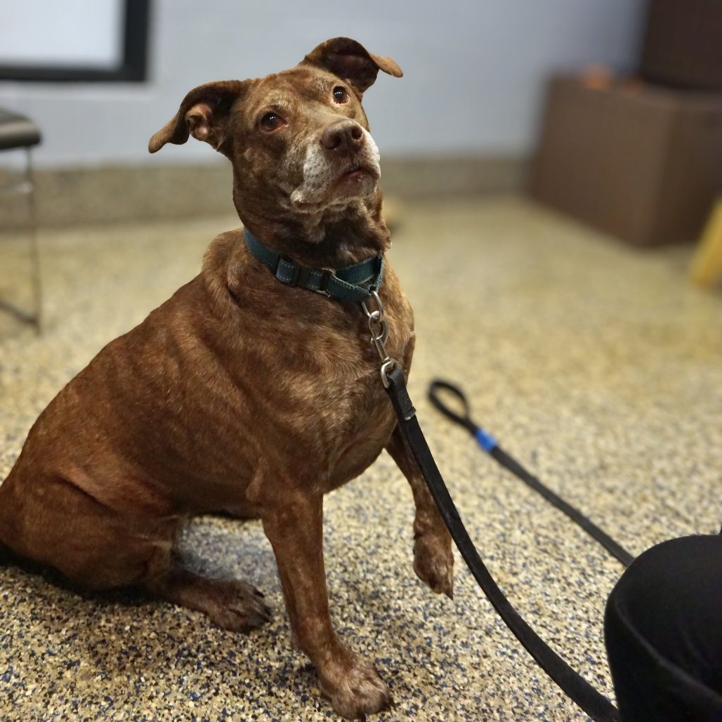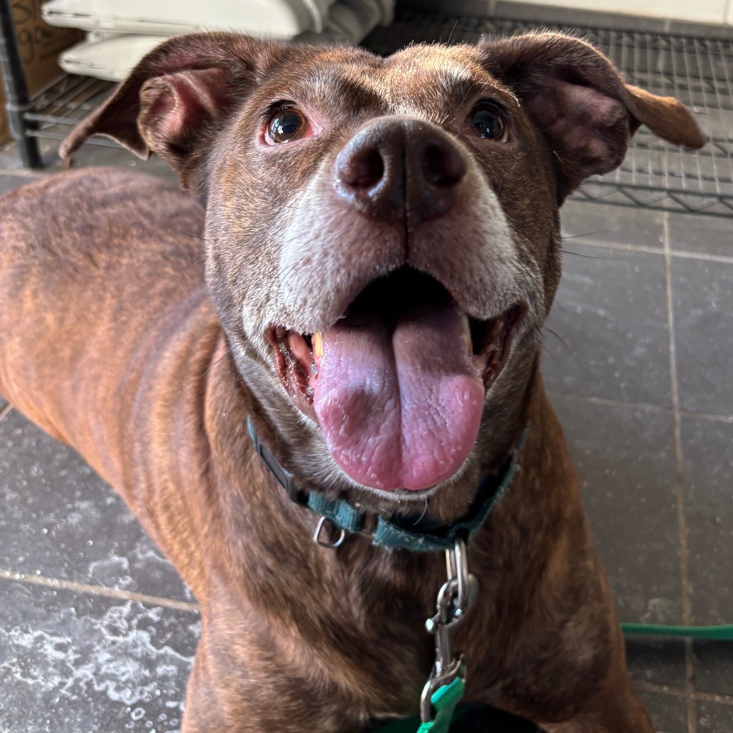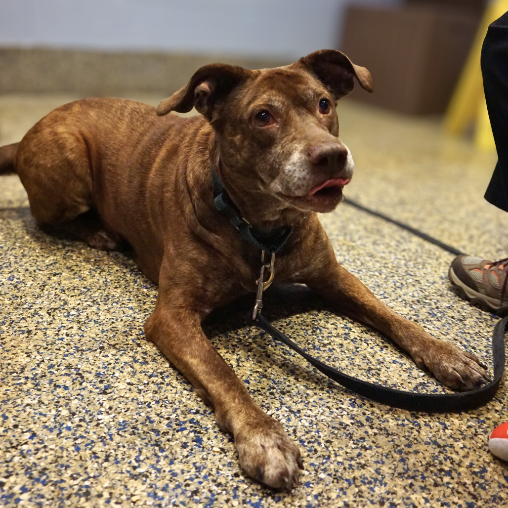 Macy may be middle-aged, but boy, she does NOT act it! This goofy, large lady is a hit in our dog playgroups, keeping up playing with dogs of different shapes, sizes and ages like a champion. Macy is a huge lover: whether you have two legs or four. She even has a positive history with small children. She's on a bit of a diet to lose some weight, but otherwise is healthy, happy and eager to join your family. Macy is happy to curl up on the couch and enjoy snuggles, or to stroll the park with you. She is a do-everything dog, and is adored by everyone that she meets. Interested in seeing what all of the hype is about? Please come meet Macy!
