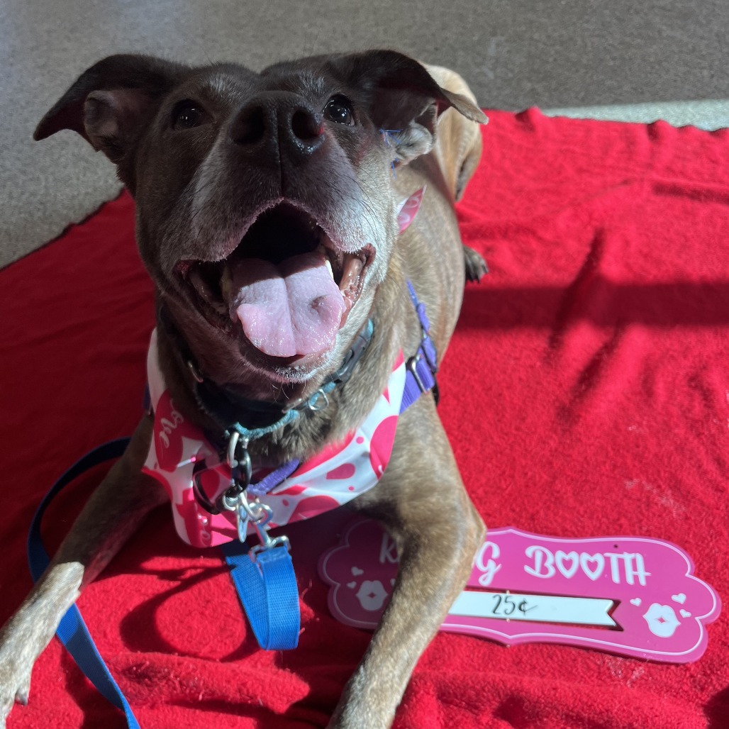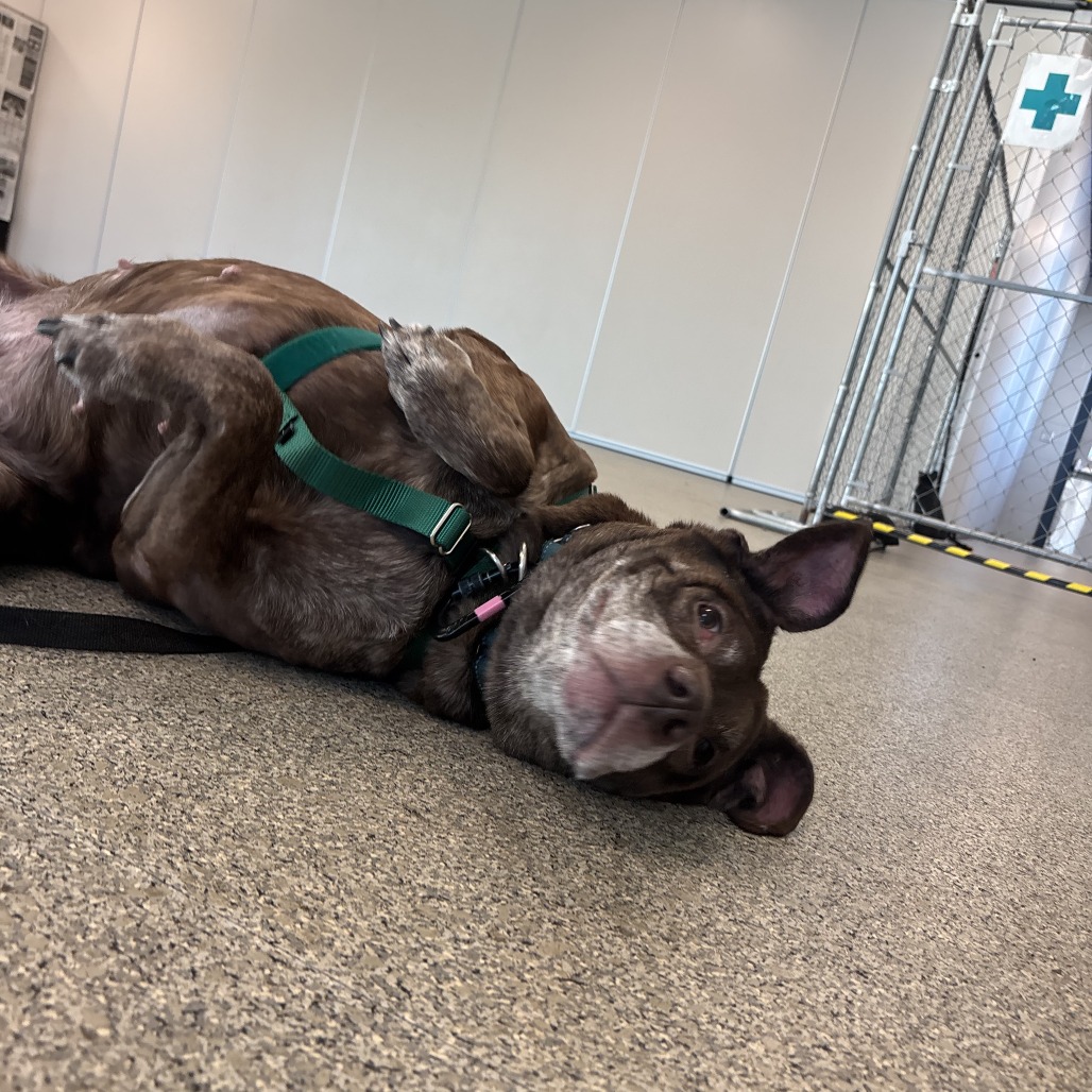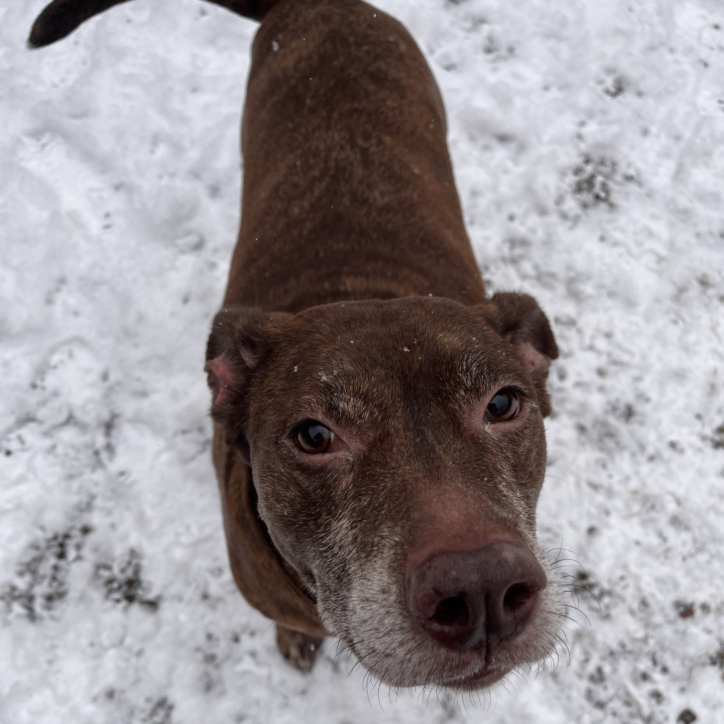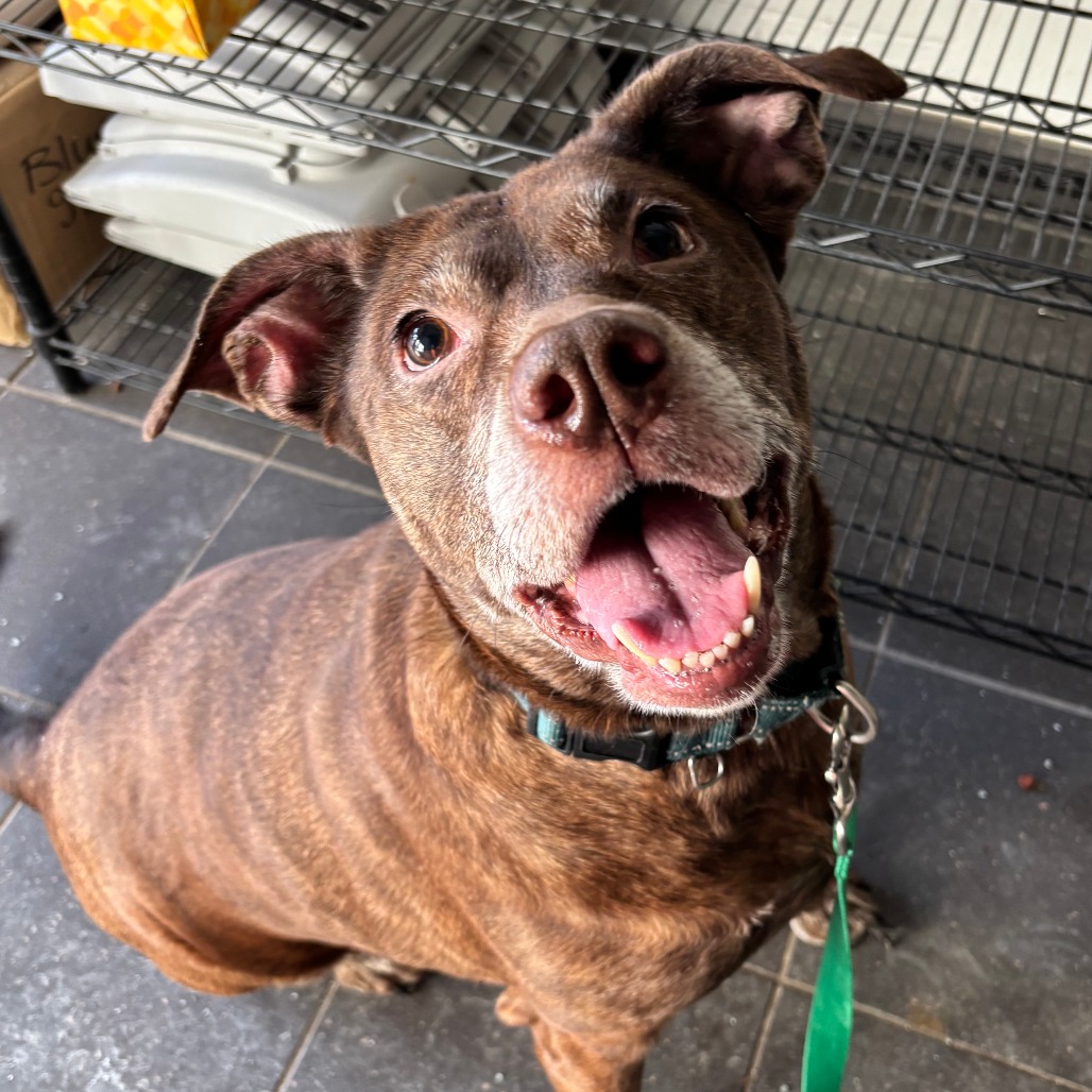 Macy may be middle-aged, but boy, she does NOT act it! This goofy, large lady is a hit in our dog playgroups, keeping up playing with dogs of different shapes, sizes and ages like a champion. Macy is a huge lover: whether you have two legs or four. She even has a positive history with small children. She's on a bit of a diet to lose some weight, but otherwise is healthy, happy and eager to join your family. Macy is happy to curl up on the couch and enjoy snuggles, or to stroll the park with you. She is a do-everything dog, and is adored by everyone that she meets. Interested in seeing what all of the hype is about? Please come meet Macy!