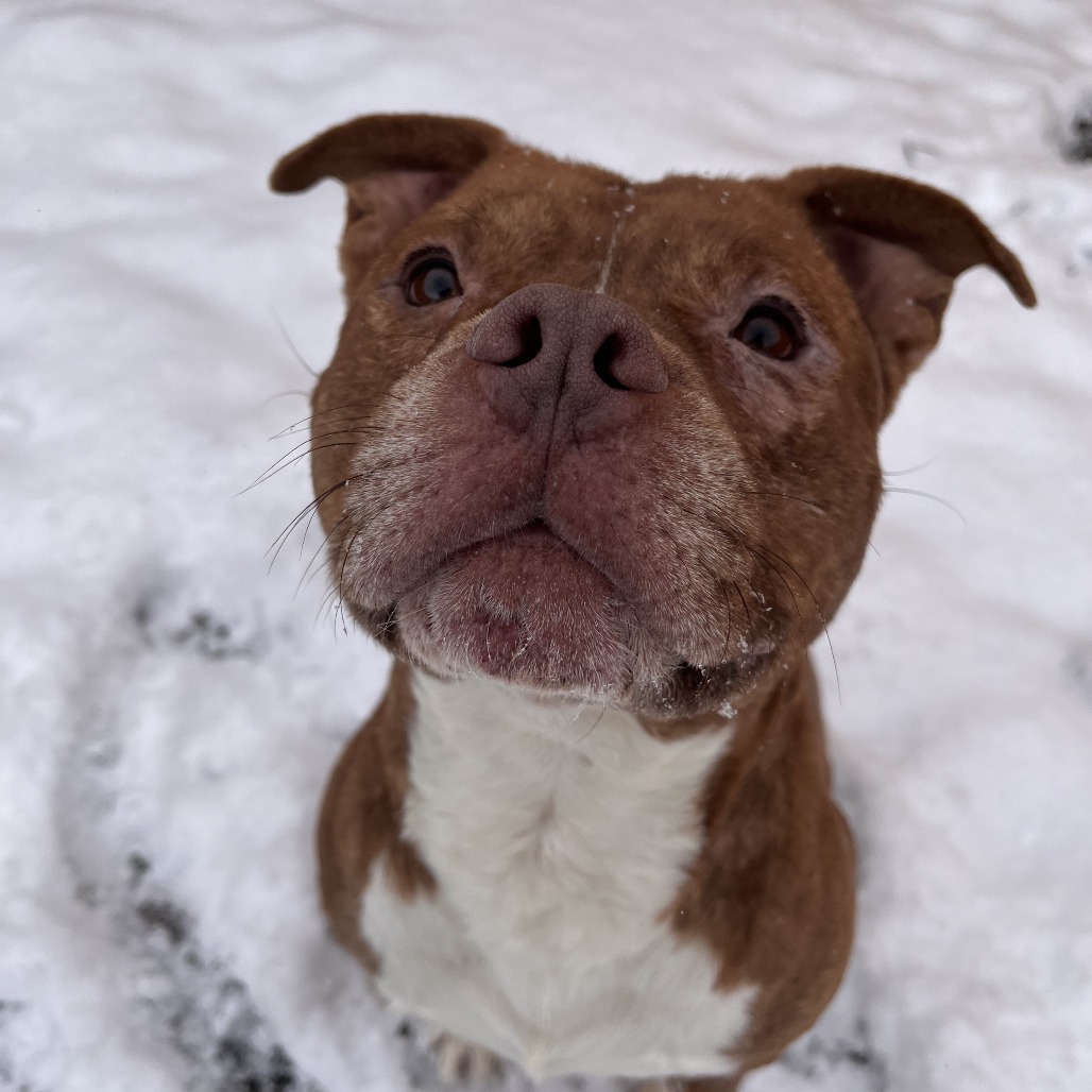 Declan is a snuggler from the word "go", and is ready to wiggle right into your heart with his big goofy head, soft fur, and adorable personality. Declan is a bit of a mystery, as he came to Lollypop Farm as a stray. Those are our favorite mysteries to "solve", though, because getting to know our former-stray friends always proves to be a good time. Declan has 'told' us the following things about himself so far: - He LOVES attention, allowing full-body pets and snuggles from day one. We had a hard time fitting him for a harness, because he was so eager to be pet, scratched and loved on instead! - He has decent leash manners. Think: not a perfect "heel", but not dragging you down, either. Always room for improvement, but walks are still enjoyable. - He knows "sit", "down", and "paw"! A true brainiac! Hmmm...we think that does it for now. As we learn more, we can always update his bio, so stay tuned for more Declan details! Interested in this well-rounded goofball? Please inquire about Declan at Lollypop Farm in Fairport!