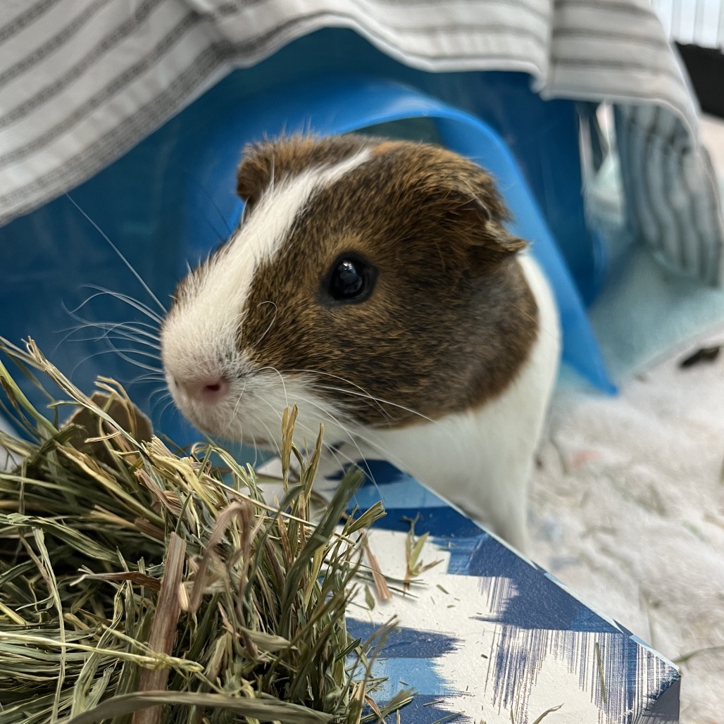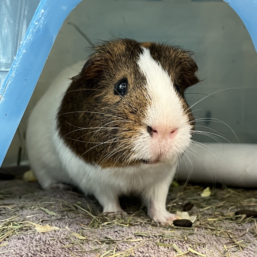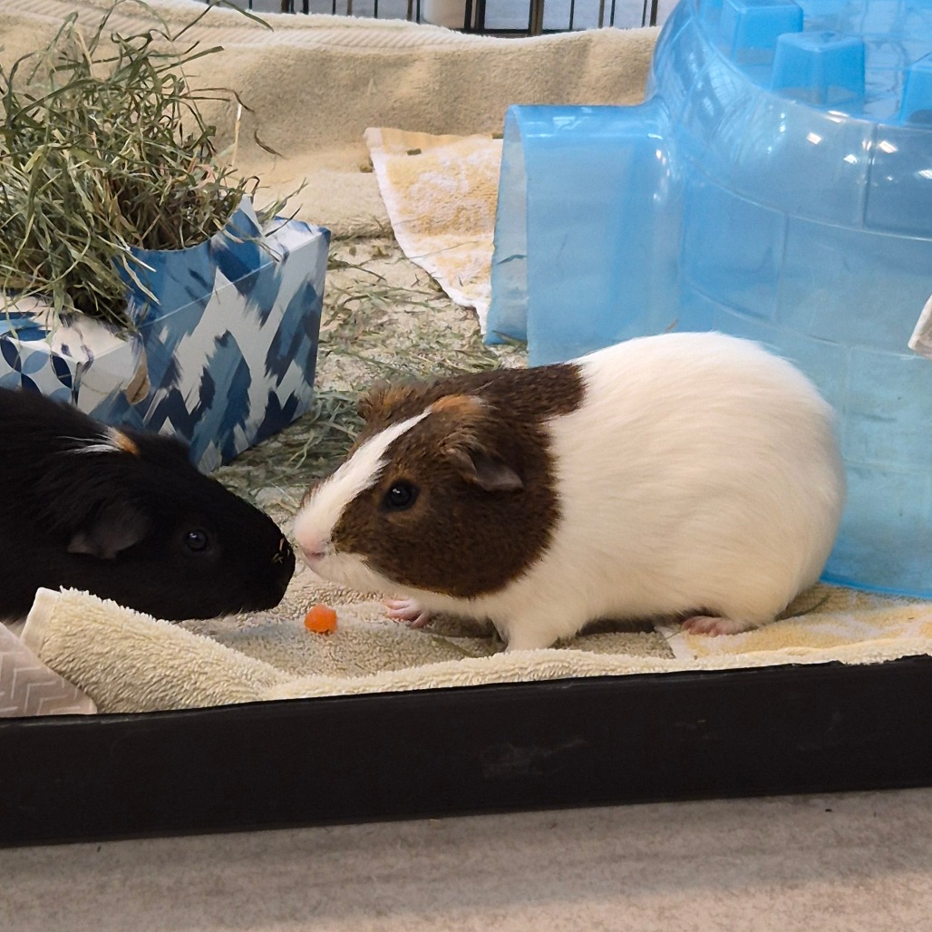 G-Force and Piggy Smalls are a pair of male guinea pigs looking for a home. They enjoy burrowing in their blankets, and also spend a lot of time grazing on timothy hay as any healthy guinea pig should. However, they are particularly fond of leafy greens and fresh veggies! These gentlemen must go home together, and can be adopted at two for the price of one. Come to the Greece Ridge Mall to meet them today!