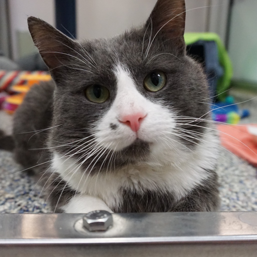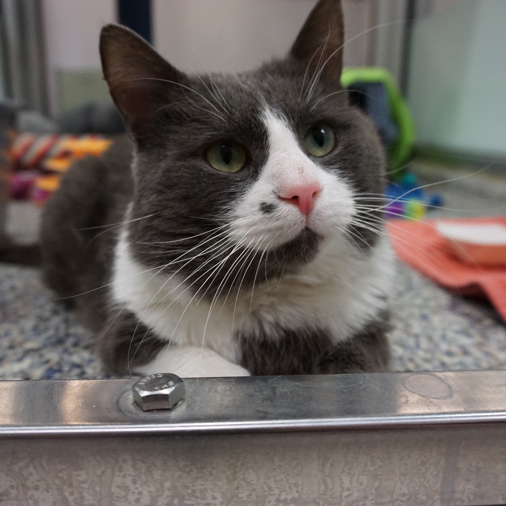 Christopher Robin is a gentle young soul, a 2-year-old grey and white fellow with a charming beauty mark upon his muzzle, as if it were painted there by a careful hand. Once abandoned, he now dreams of a cozy indoor life—one filled with soft beds, kind voices, and the quiet comfort of being truly cherished. True to his storybook name, Christopher Robin has a thoughtful, tender way about him, happiest in calm surroundings where days pass quietly and companionship is soft and steady. He finds happiness in covered beds that feel like little cottages, in catnip toys that bring out a playful spark, and in the simple magic of being spoken to gently, as if sharing small, important thoughts with a trusted friend. Christopher Robin is also feline leukemia positive, which means he will need to live as an indoor-only kitty, either with other FeLV-positive friends or as a beloved only cat—but cats like him can still enjoy many happy, love-filled years, especially when surrounded by good care, warm beds, and gentle hearts. A few tender head scritches are always welcome, and with patience and love, this sweet, shy boy will be a loyal and comforting companion, the sort of friend who makes even ordinary days feel a little more peaceful and bright.