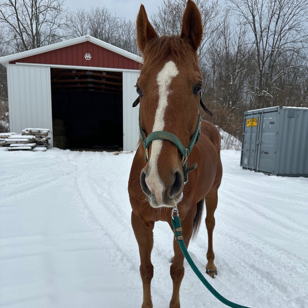 Stephan Registered OTTB "Real Sly" DOB: 4/02/2006, 16.1hh Stephan came to us with high praises. This sweet boy was loved on by his previous owner for most of his life, but due to unfortunate circumstances in the owner's life, he is looking for another caring family to call home. He gets to enjoy the rest of his life as a pasture pal, but still deserves praise for how much he has done in his life. He raced, showed, trailered often, and has adjusted well to different homes. He is non-rideable due to conformational issues, including a club foot. Stephan has been great for grooming, handling, vet, farrier, you name it! Suitable for a beginner-intermediate handler. Non-riding Companion Only. Adoption Fee: $300 or eligible for the C.A.R.E Program.