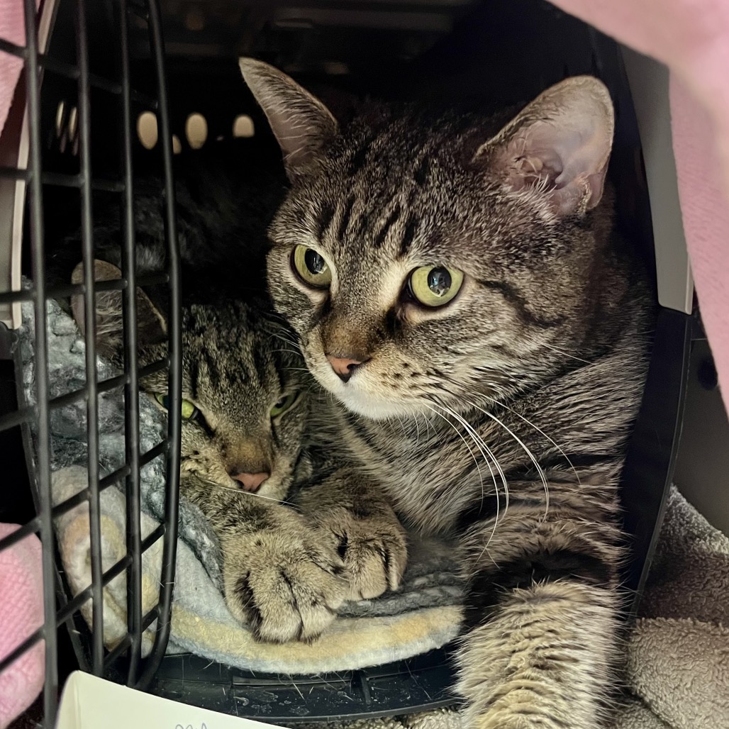 Meet Kitty and Tabby, two warm-hearted brown tabby sisters, seven years wise and perfectly in sync. They curl into impossibly small boxes and sleep piled together like a sunbeam they never want to leave. Shy at first, they bloom with gentle voices, soft cheek scritches, and the quiet rhythm of a home without dogs—just tall perches, wet food, and treats like Churu and sardines in water (no salt, please). They’re not just a pair; they’re a promise. Together, they’re looking for patient hearts who understand that love sometimes comes in twos.