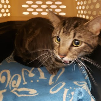 Meet Sloane, a 3-year-old brown tabby with a quiet soul and a heart that beats for feline friendship. He’s not one to rush—calm, patient humans are his language, and trust is earned in soft glances and shared stillness. Once he knows you, he’ll welcome gentle head scritches and the simple joy of sardines in water (no salt, please) or a Churu treat offered with care. He lives for tall perches where he can watch the world, the flicker of birds beyond the glass, and the comfort of wet food served with love. With other cats by his side, a warm spot in the sun, and a roll in fresh catnip, this gentle fellow finds his peace—slow, steady, and full of quiet love.