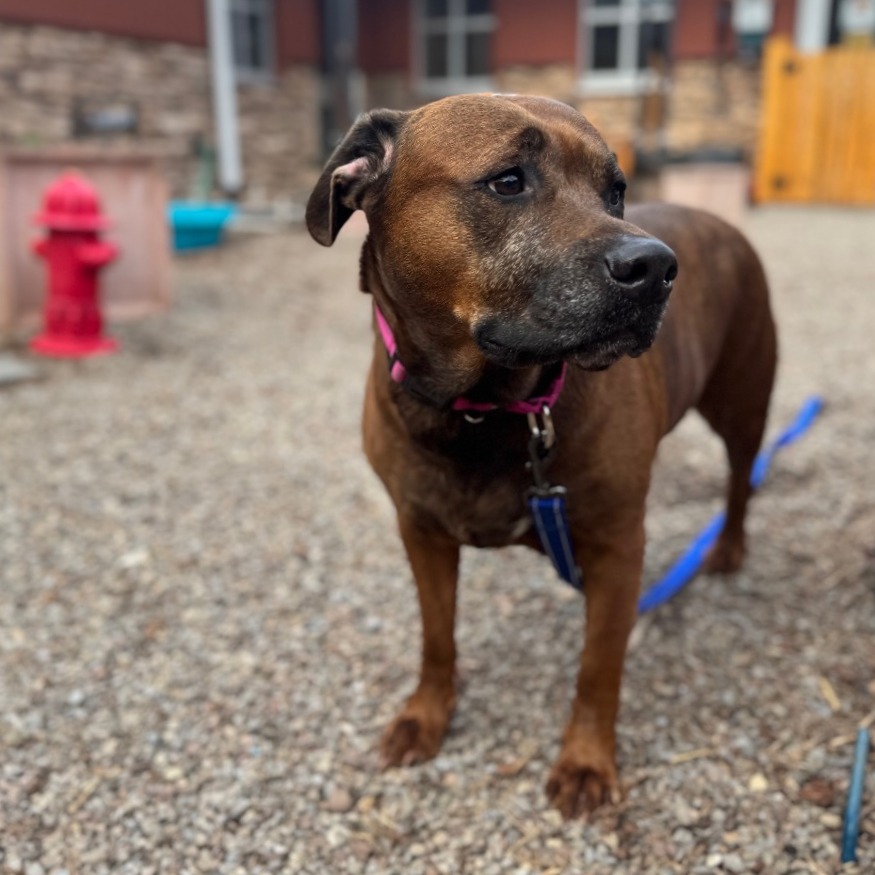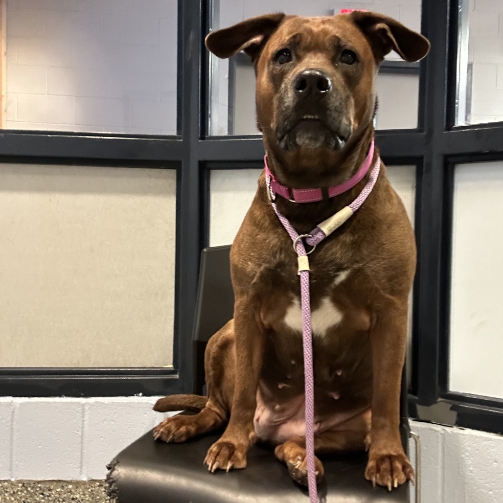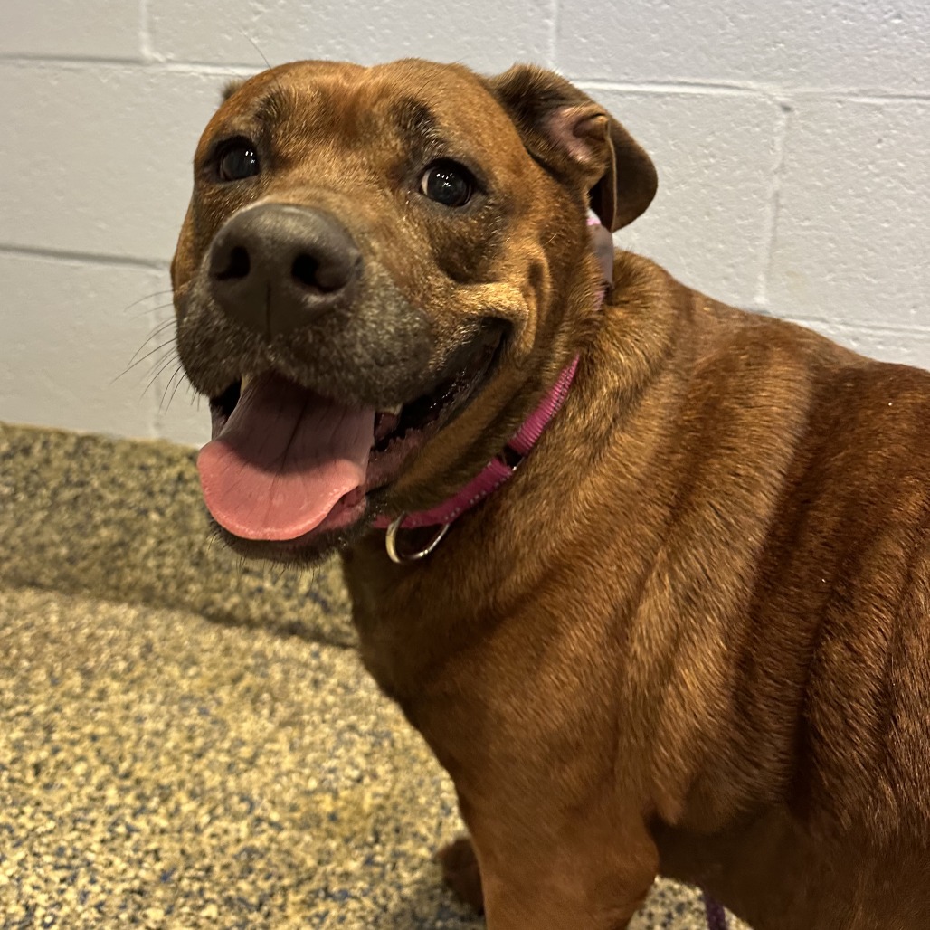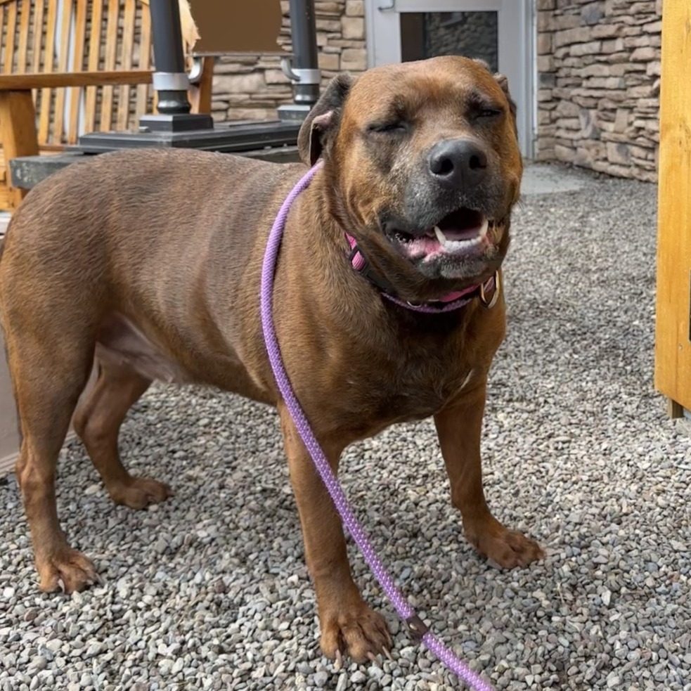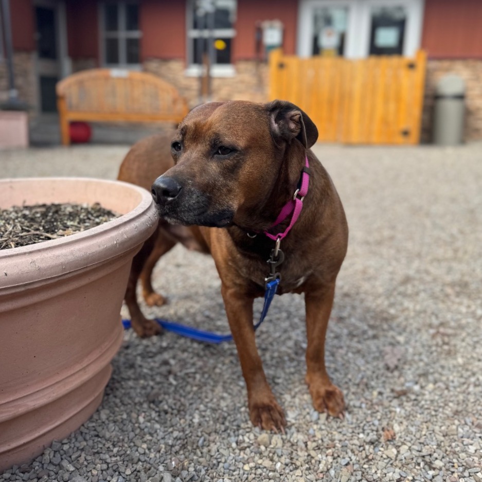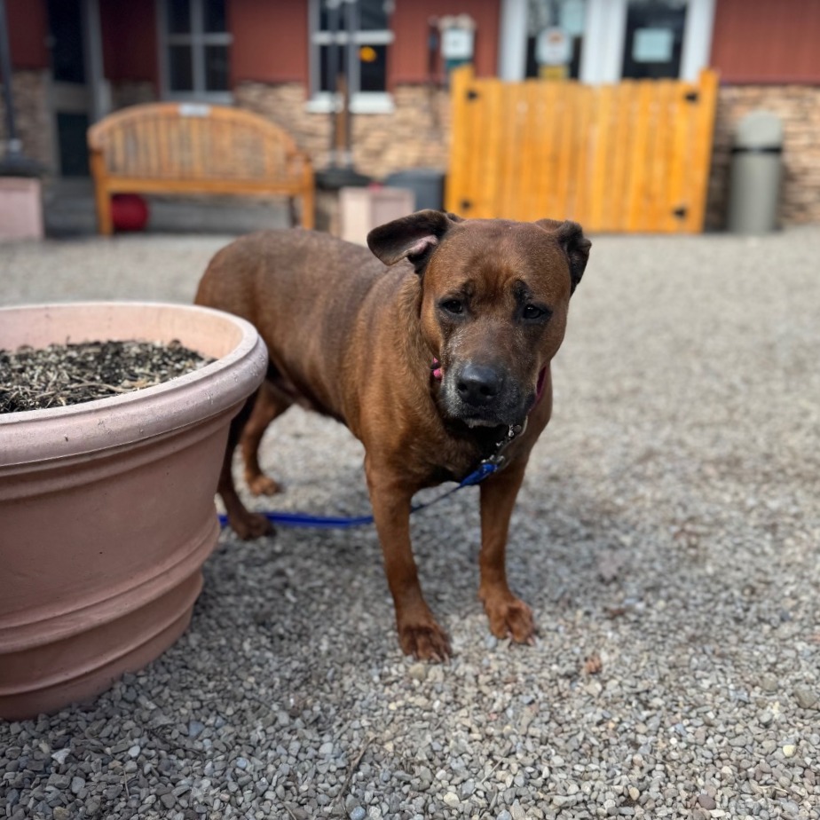 Remi is a goofy girl eager to start anew this Spring with you and your family! Remi is well-loved among kennel staff, volunteer dog walkers, and Doggy Day Out participants alike. Between her polite leash skills, wiggly and friendly demeanor, and overall zest for life and adventure, we truly can't get enough of her. Remi did well living in a home with other animals in the past, though she doesn't always appreciate seeing dogs here at the shelter. We'd call her a 'selective' dog when it comes to other animals. I mean hey, we don't all love everyone that we meet...right? Remi does has a positive history living with children of varying ages, and has had successful Doggy Day Out adventures with children since coming to Lollypop Farm as well. If you're looking for 82 pounds of a fun, friendly and adorable walking buddy to keep you in shape and enjoying nature this Spring, please inquire about miss Remi E!