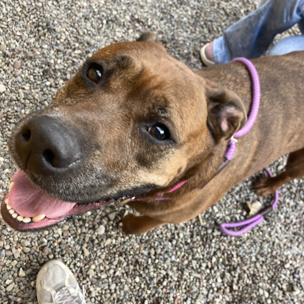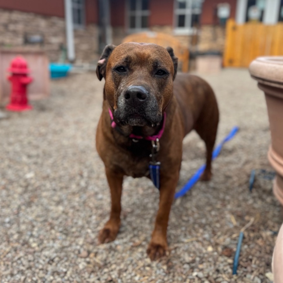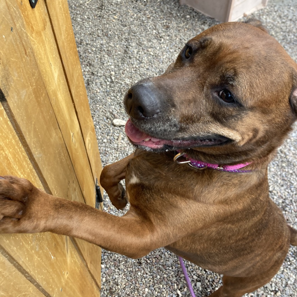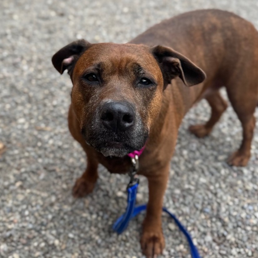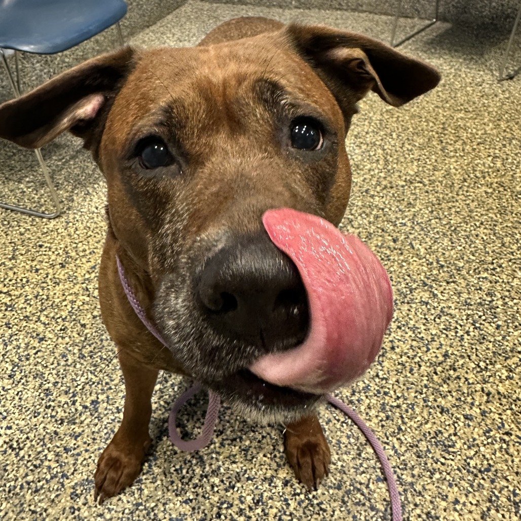 Remi is a goofy girl eager to start anew this Spring with you and your family! Remi is well-loved among kennel staff, volunteer dog walkers, and Doggy Day Out participants alike. Between her polite leash skills, wiggly and friendly demeanor, and overall zest for life and adventure, we truly can't get enough of her. Remi did well living in a home with other animals in the past, though she doesn't always appreciate seeing dogs here at the shelter. We'd call her a 'selective' dog when it comes to other animals. I mean hey, we don't all love everyone that we meet...right? Remi does has a positive history living with children of varying ages, and has had successful Doggy Day Out adventures with children since coming to Lollypop Farm as well. If you're looking for 82 pounds of a fun, friendly and adorable walking buddy to keep you in shape and enjoying nature this Spring, please inquire about miss Remi E!