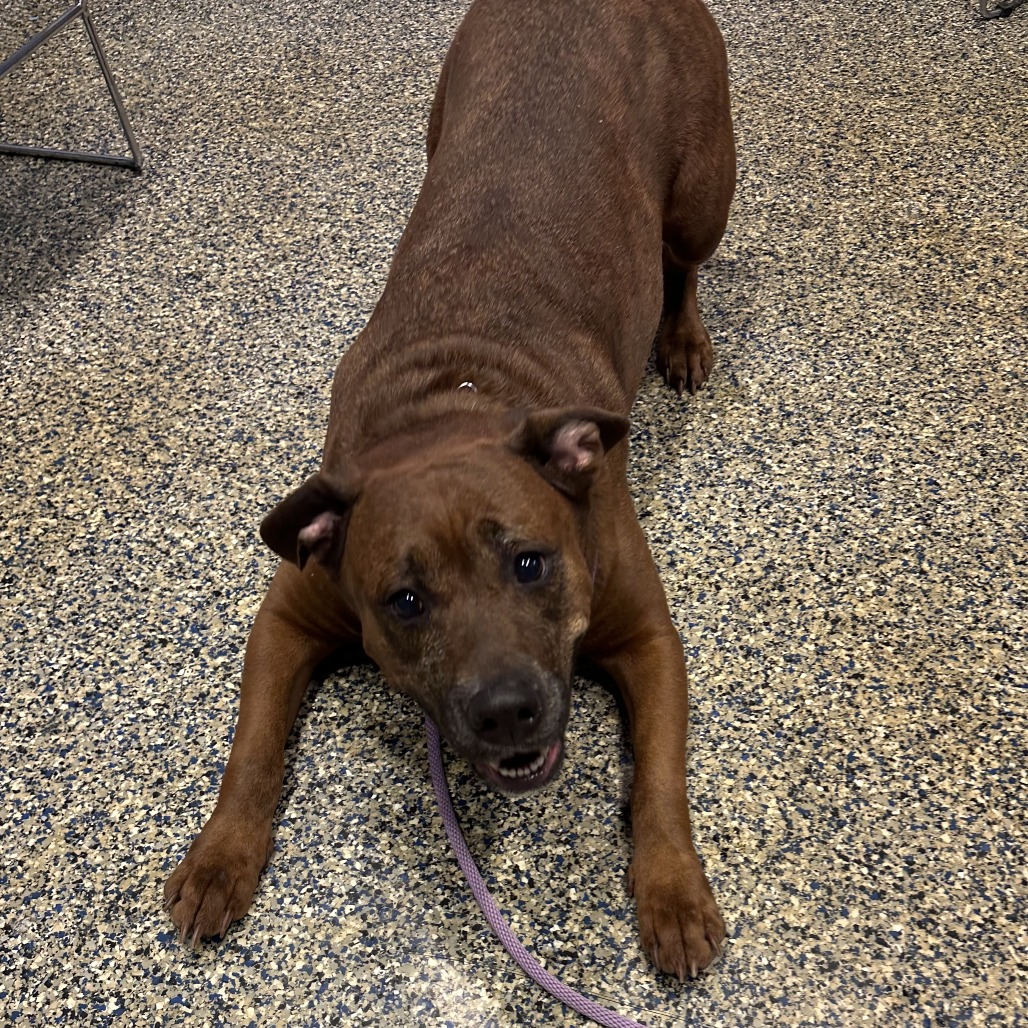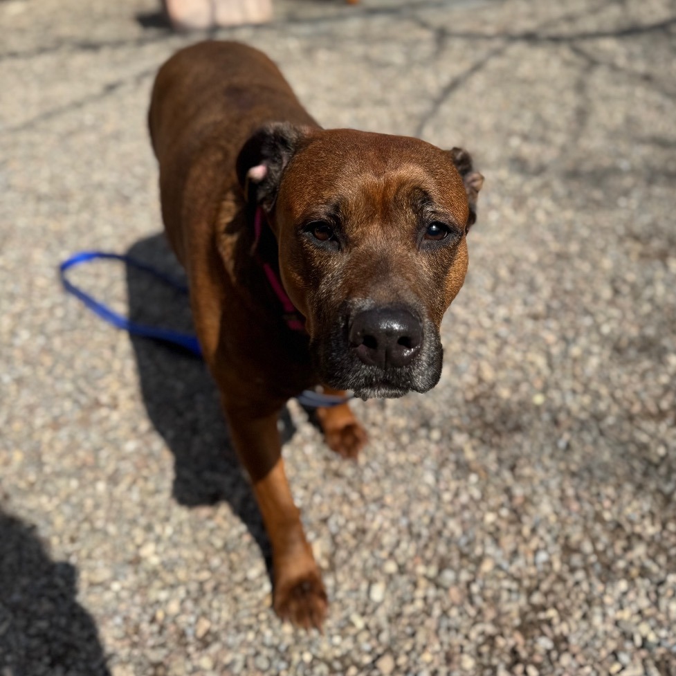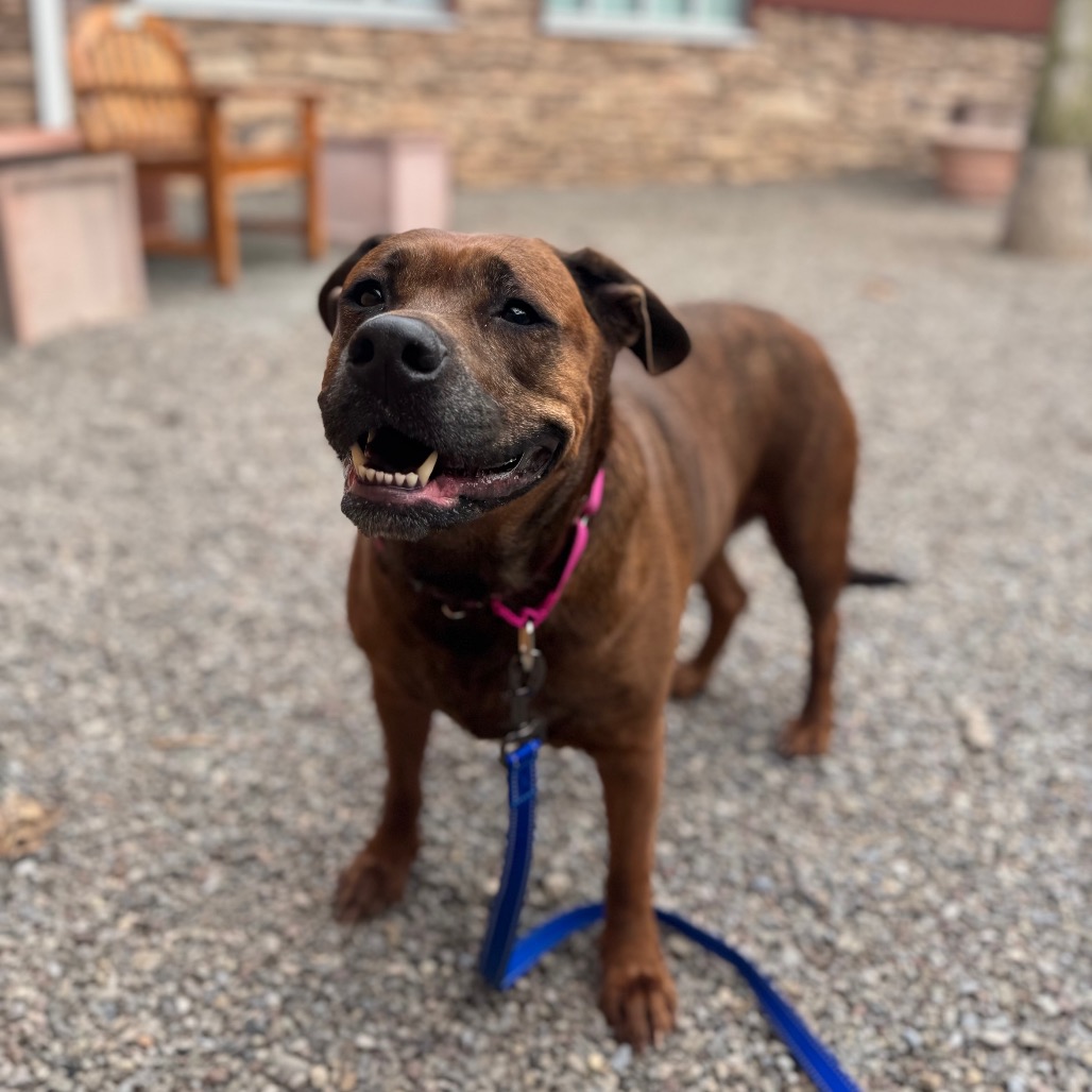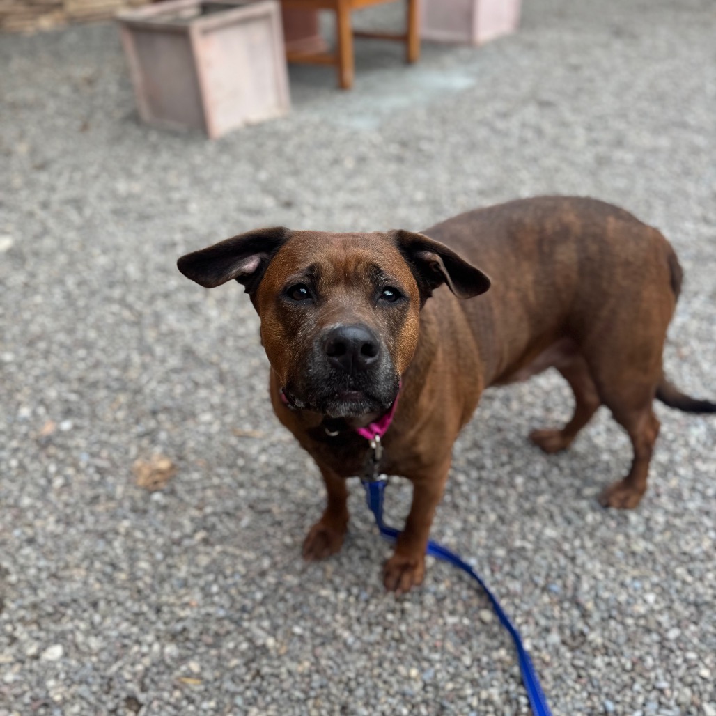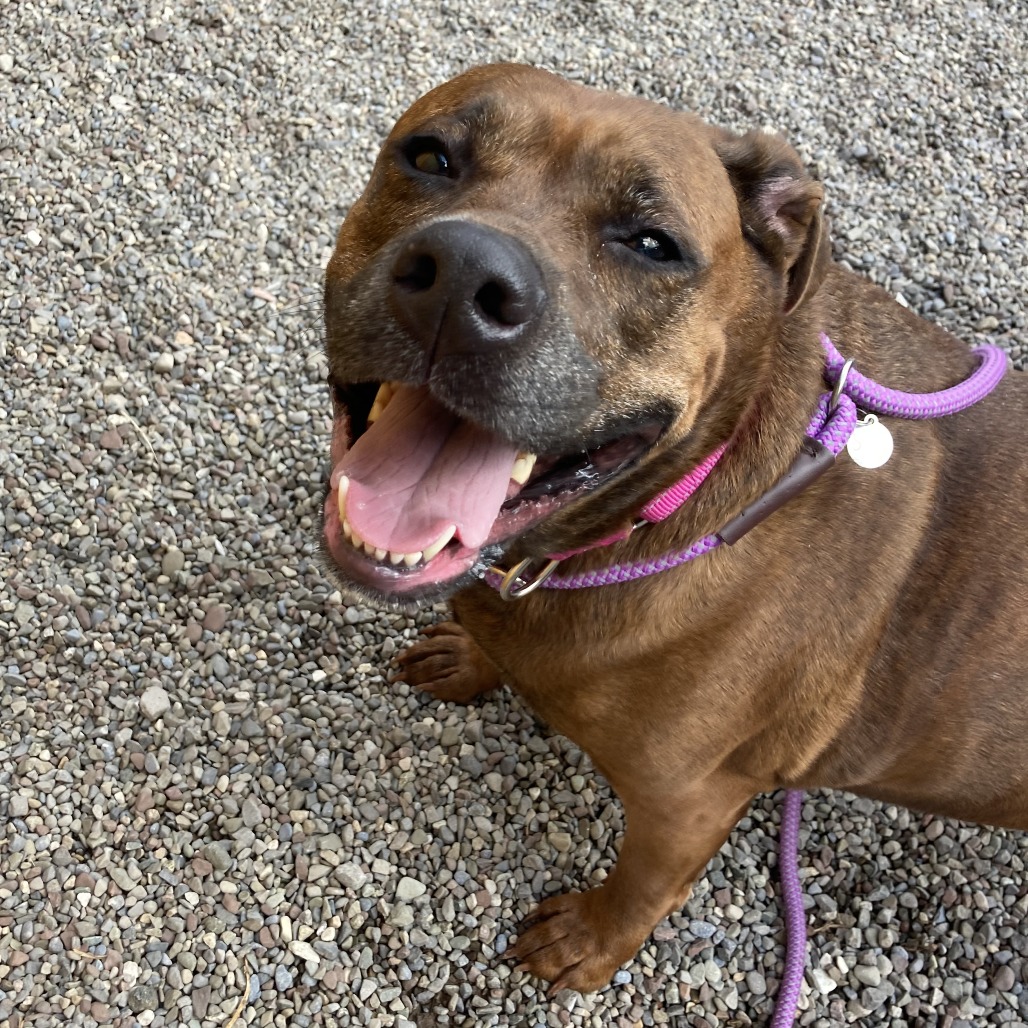 Remi is a goofy girl eager to start anew this Spring with you and your family! Remi is well-loved among kennel staff, volunteer dog walkers, and Doggy Day Out participants alike. Between her polite leash skills, wiggly and friendly demeanor, and overall zest for life and adventure, we truly can't get enough of her. Remi did well living in a home with other animals in the past, though she doesn't always appreciate seeing dogs here at the shelter. We'd call her a 'selective' dog when it comes to other animals. I mean hey, we don't all love everyone that we meet...right? Remi does has a positive history living with children of varying ages, and has had successful Doggy Day Out adventures with children since coming to Lollypop Farm as well. If you're looking for 82 pounds of a fun, friendly and adorable walking buddy to keep you in shape and enjoying nature this Spring, please inquire about miss Remi E!