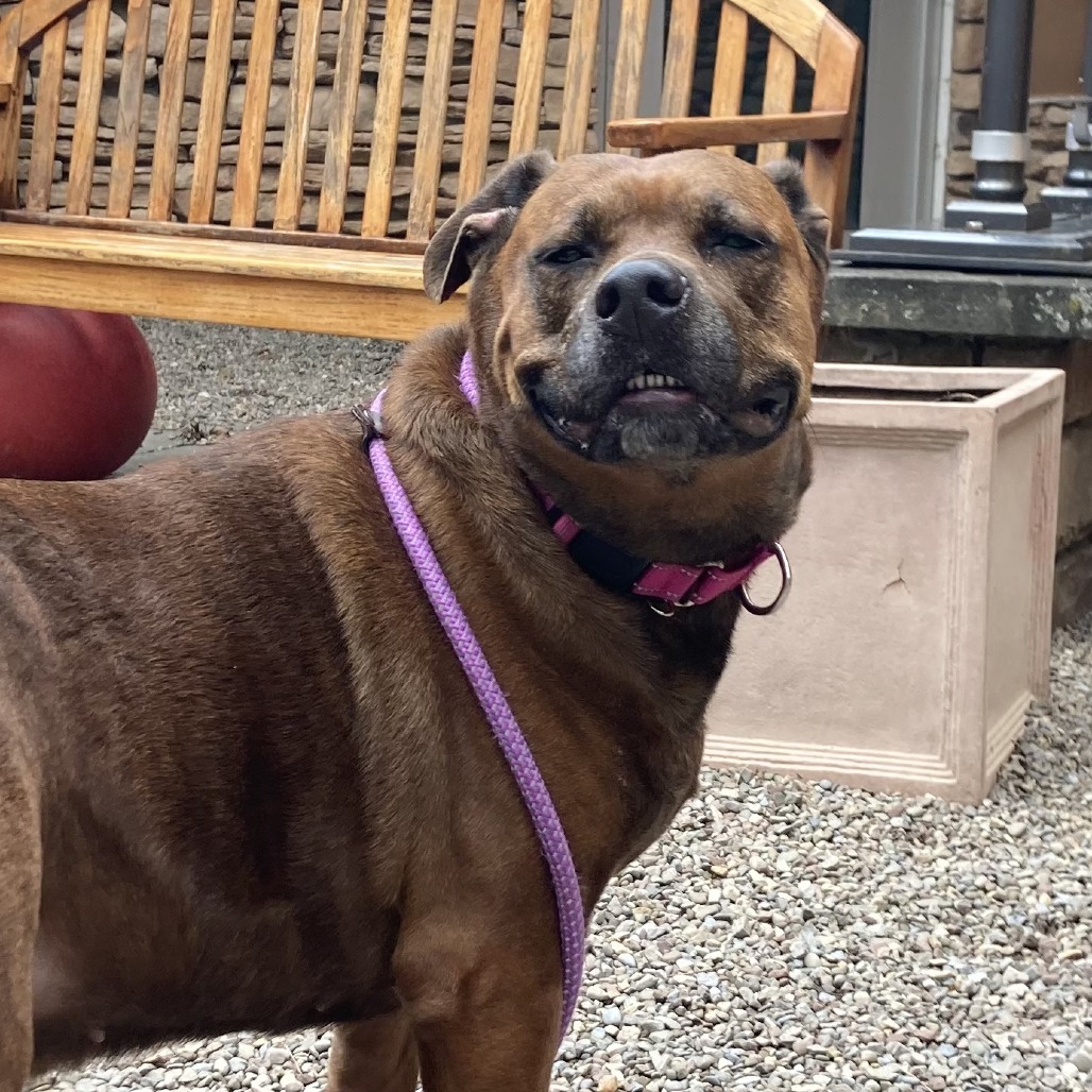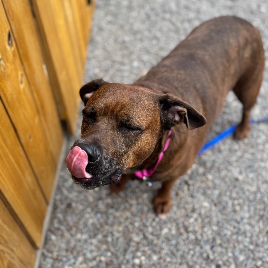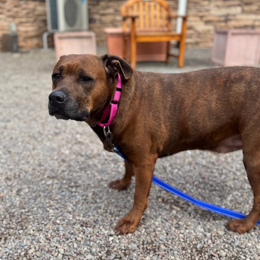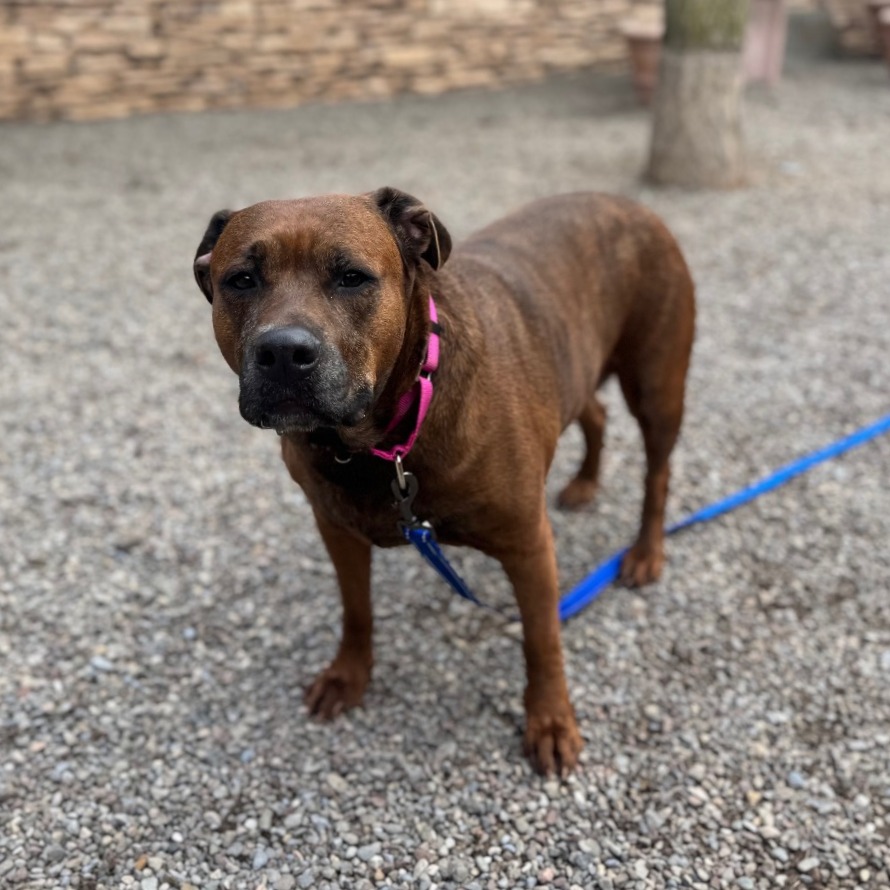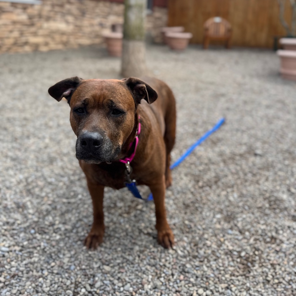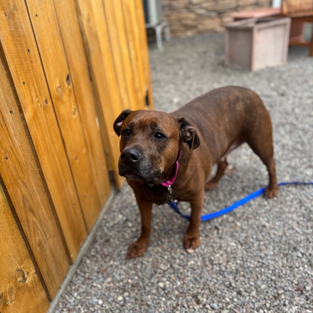 Remi is a goofy girl eager to start anew this Spring with you and your family! Remi is well-loved among kennel staff, volunteer dog walkers, and Doggy Day Out participants alike. Between her polite leash skills, wiggly and friendly demeanor, and overall zest for life and adventure, we truly can't get enough of her. Remi did well living in a home with other animals in the past, though she doesn't always appreciate seeing dogs here at the shelter. We'd call her a 'selective' dog when it comes to other animals. I mean hey, we don't all love everyone that we meet...right? Remi does has a positive history living with children of varying ages, and has had successful Doggy Day Out adventures with children since coming to Lollypop Farm as well. If you're looking for 82 pounds of a fun, friendly and adorable walking buddy to keep you in shape and enjoying nature this Spring, please inquire about miss Remi E!