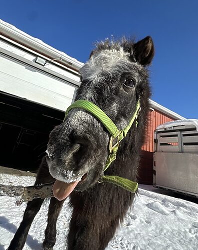 He was diagnosed with Cushing’s disease, a chronic condition that will require ongoing veterinary management for this older equine. Pico now has a dedicated care plan to manage his Cushing’s disease and address his poor hoof quality, the result of years without proper trimming. He requires specialized farrier work and continued veterinary monitoring to stay comfortable.