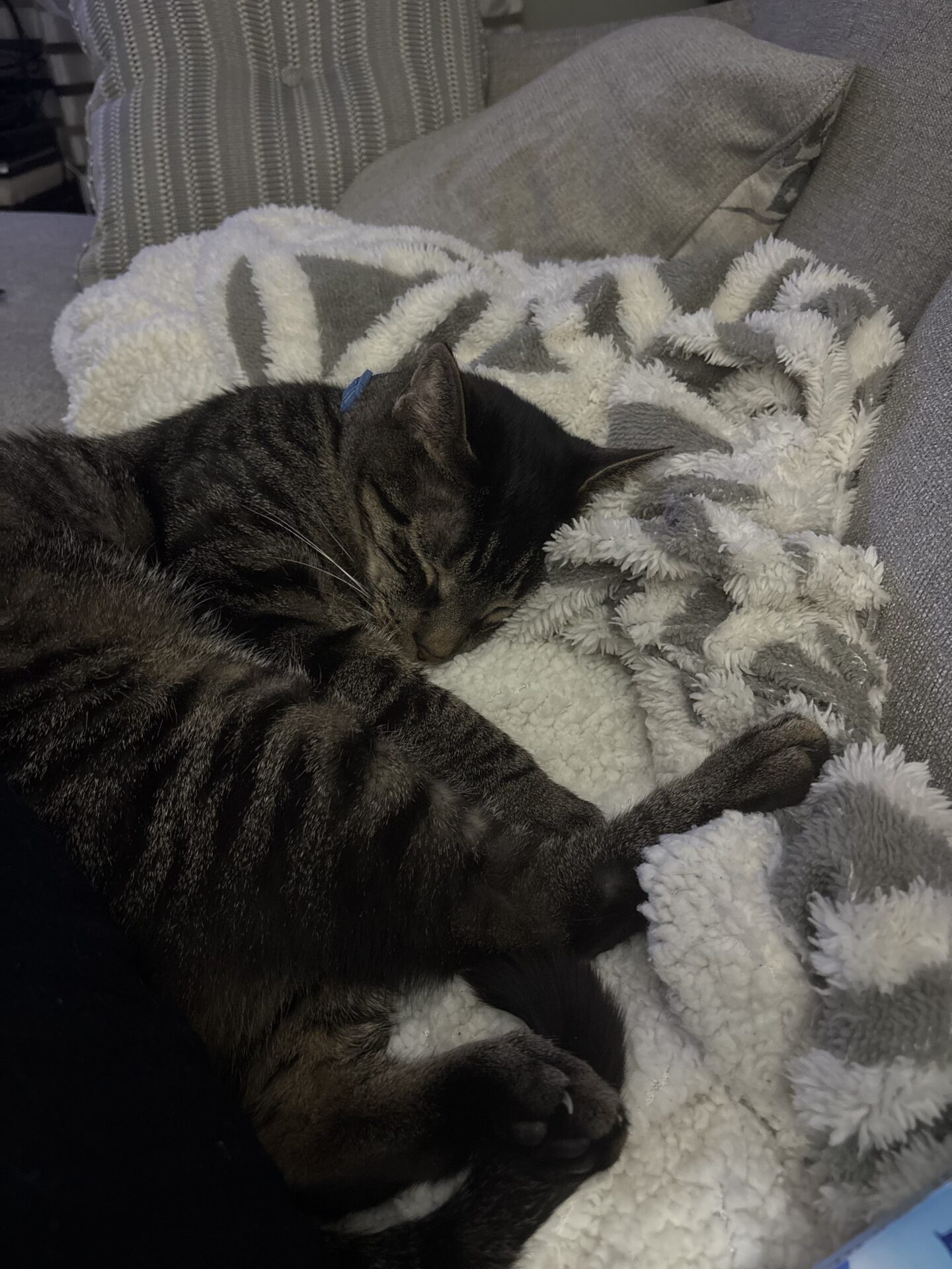 “All my college friends couldn’t believe our ‘Brockport kitty, ‘ as many called him, had made his way back to me. I can only wonder about the lives he lived in between. Since I cannot have cats in my current apartment, Moto is now happily ‘retired’ with my parents in northern New York. I did keep him with me for a few weeks before moving him, and he is still his same happy, playful, and loving self, which means constantly demanding snuggles and following everyone around.”