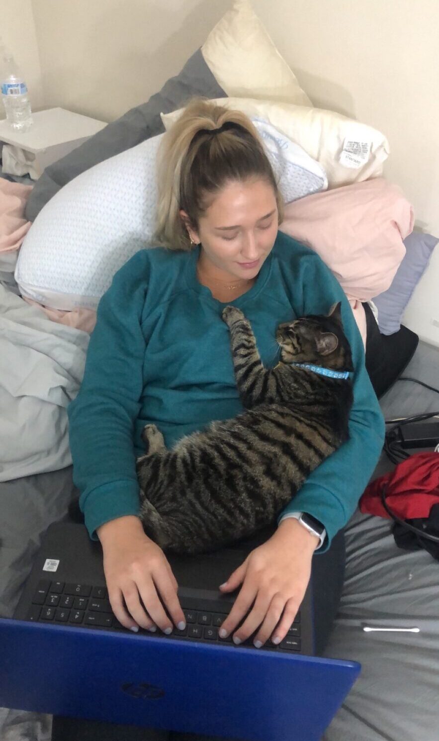 “I got Moto during the summer of 2020,” Kerri states. “I took him everywhere with me as a kitten, and he became quite the social butterfly, eventually moving with me to SUNY Brockport that fall. He loved the attention and made friends all over campus, including with the Brockport and University police. Brockport police had even brought him back to me with him locked up in the backseat like he had been arrested. I wish I had a photo of that. He was a true escape artist; no matter how hard I tried to keep him inside, he always found a way out to go on adventures.